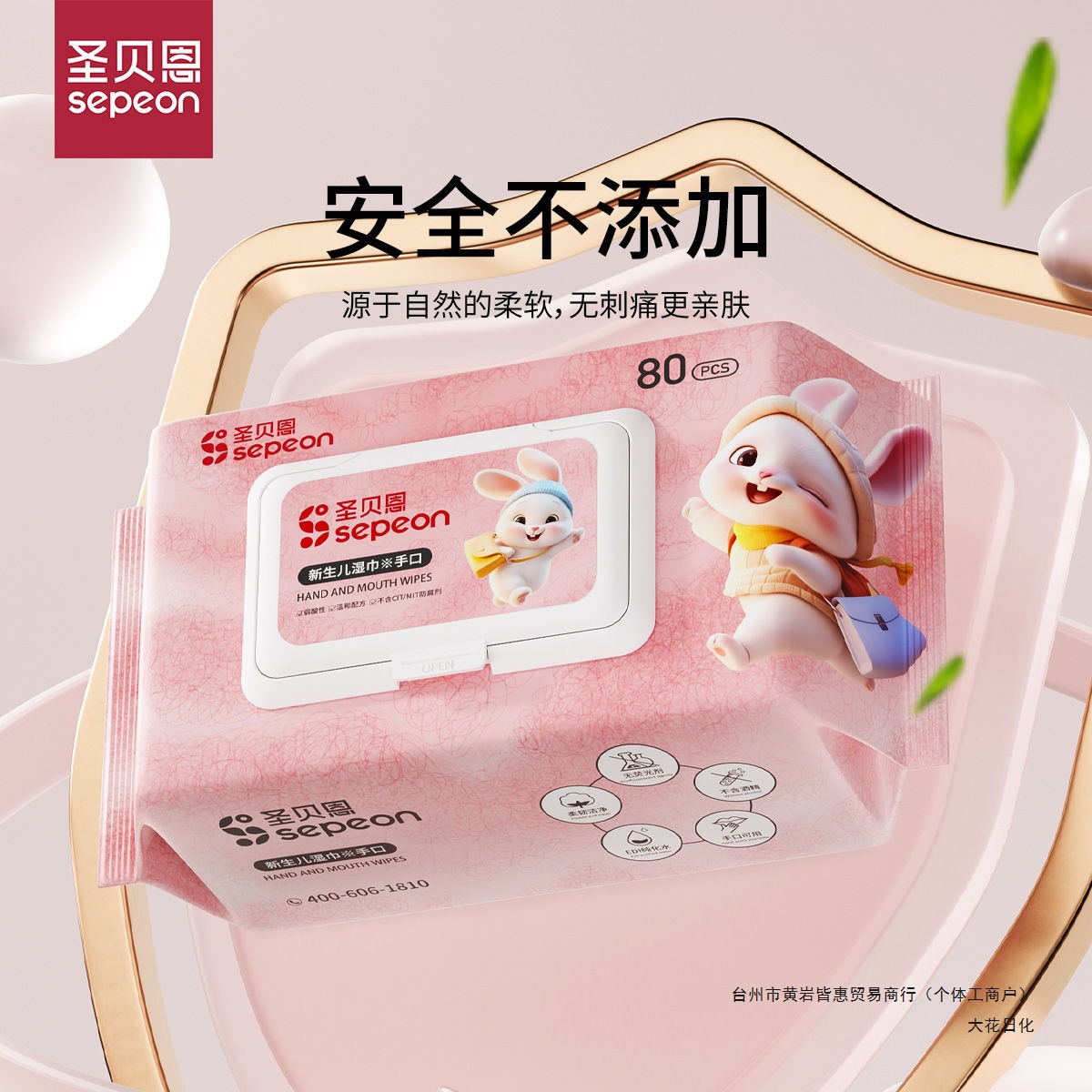 圣贝恩婴儿湿巾宝宝儿童手口擦屁股湿巾加厚带盖80抽10包整箱