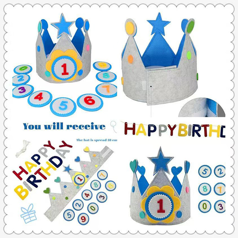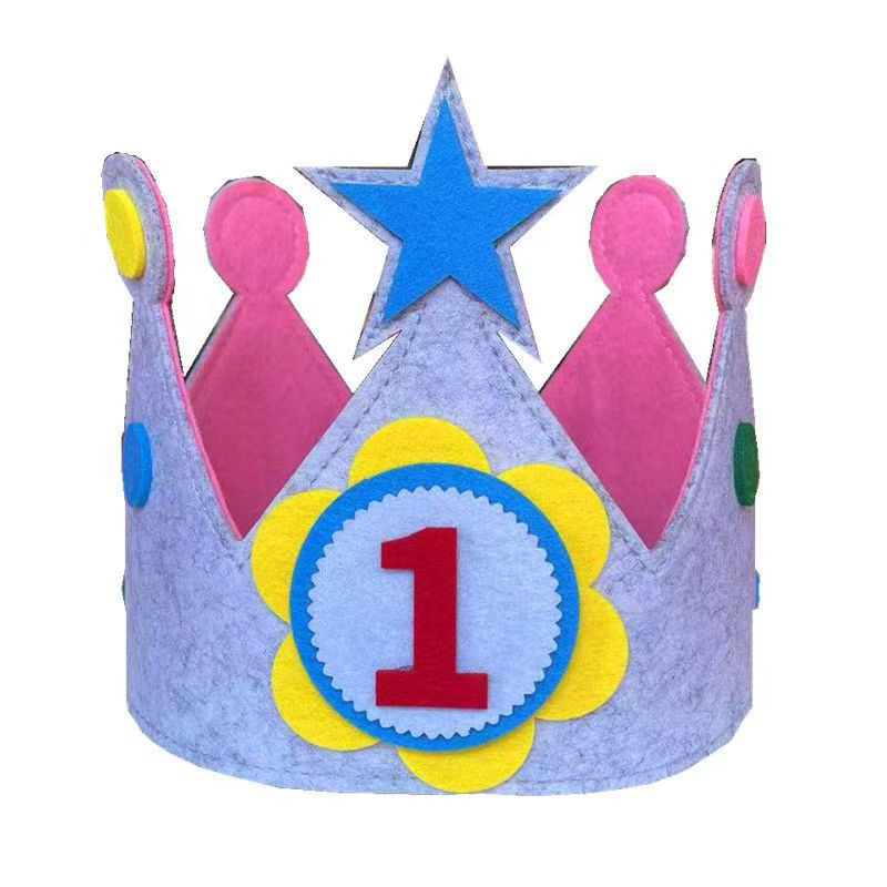 热销生日派对皇冠装饰帽 宝宝周岁王冠生日帽儿童DIY五角星魔术贴