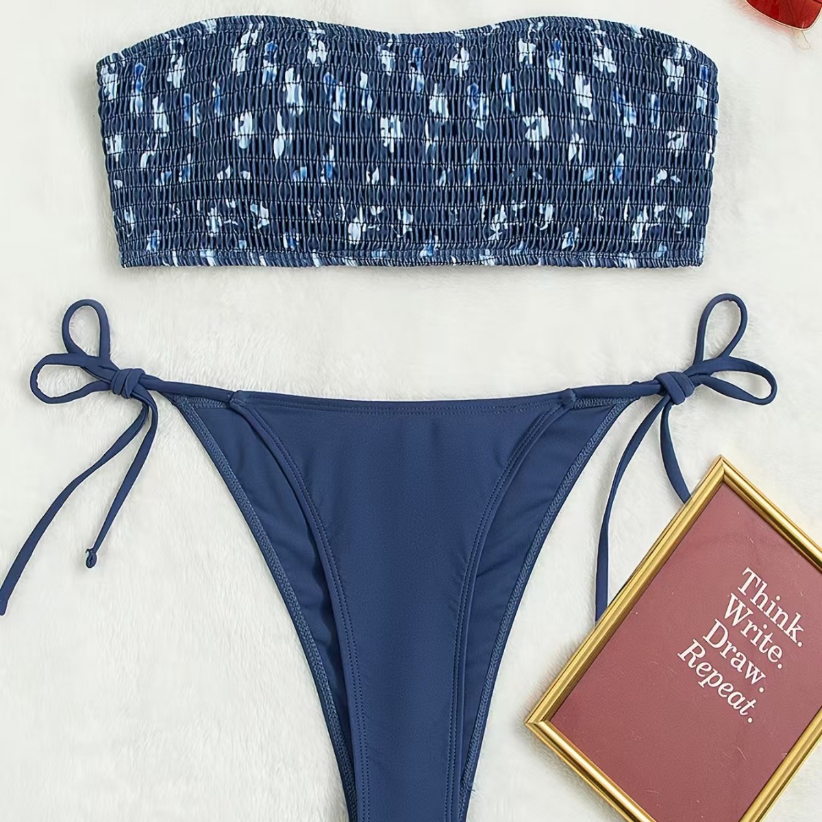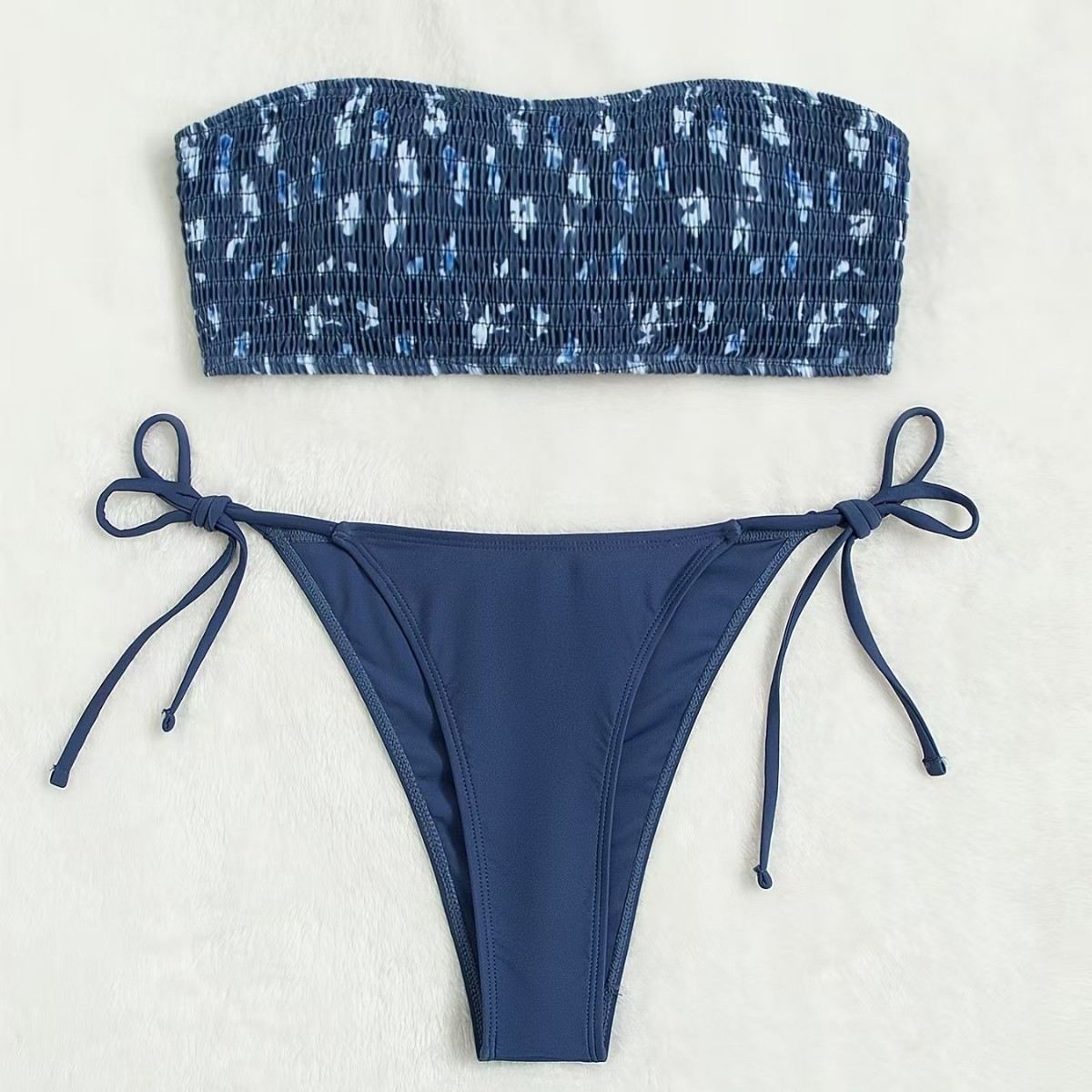定制加工2025新款分体泳衣女性感抹胸比基尼亚马逊条纹bikini泳装