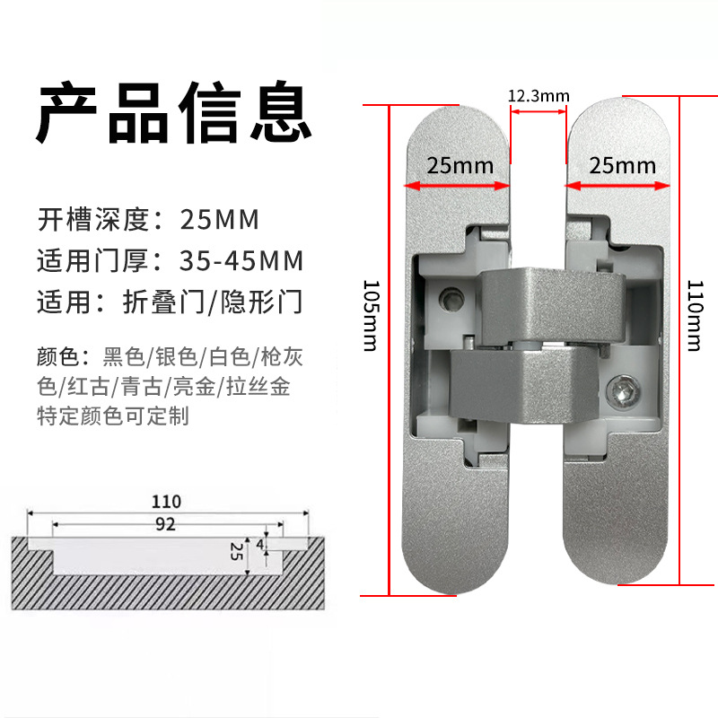 折叠门木门三维可调十字铰链锌合金暗铰链隐形暗门合页静音设计