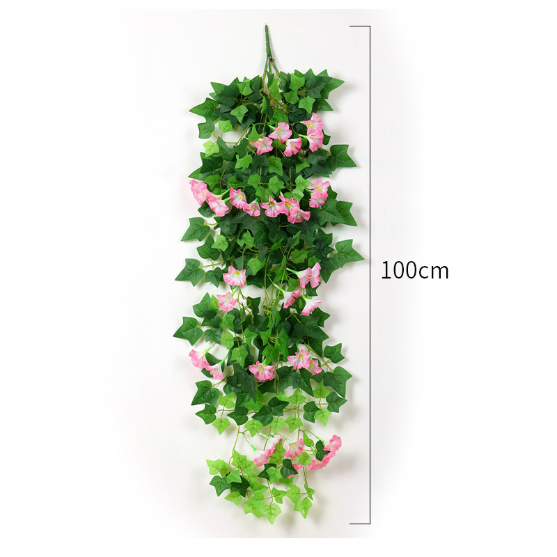 批发牵牛花挂壁挂假花塑料藤蔓高仿真植物吊篮婚庆垂吊牵牛花藤