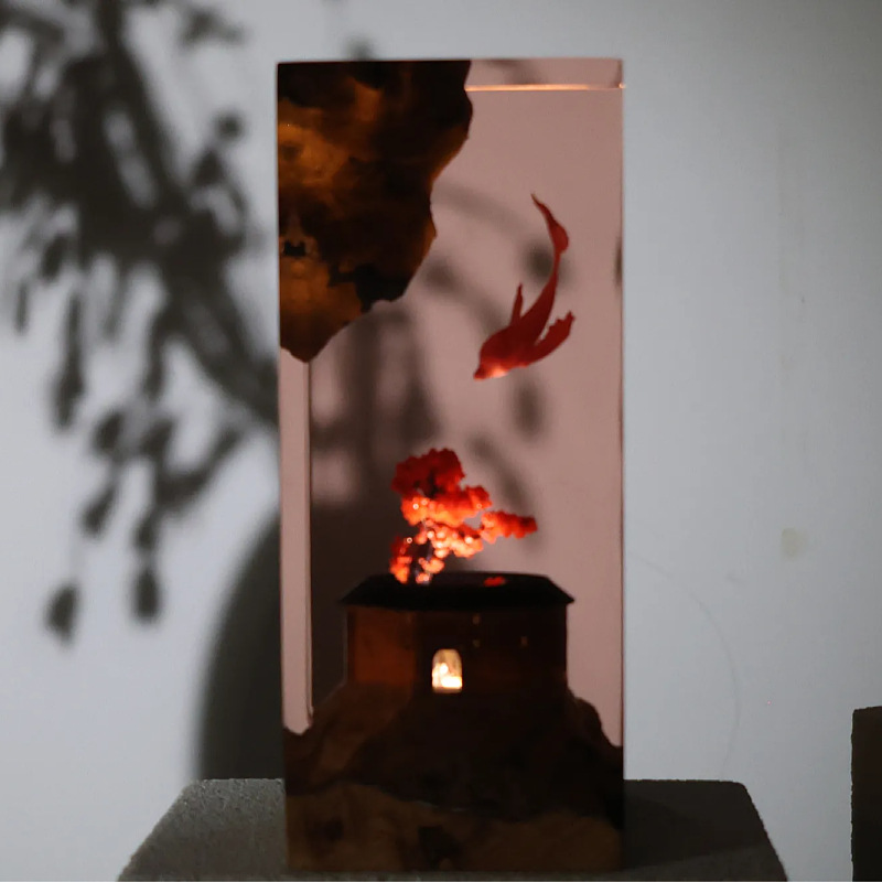国风创意大鱼海棠树脂夜灯 3D立体浮雕工艺摆件 卧室氛围灯装饰品