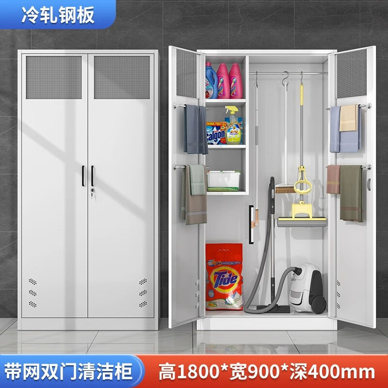家政柜拖把扫帚保洁工具收纳柜户外阳台储物柜教室清洁柜带洞洞板
