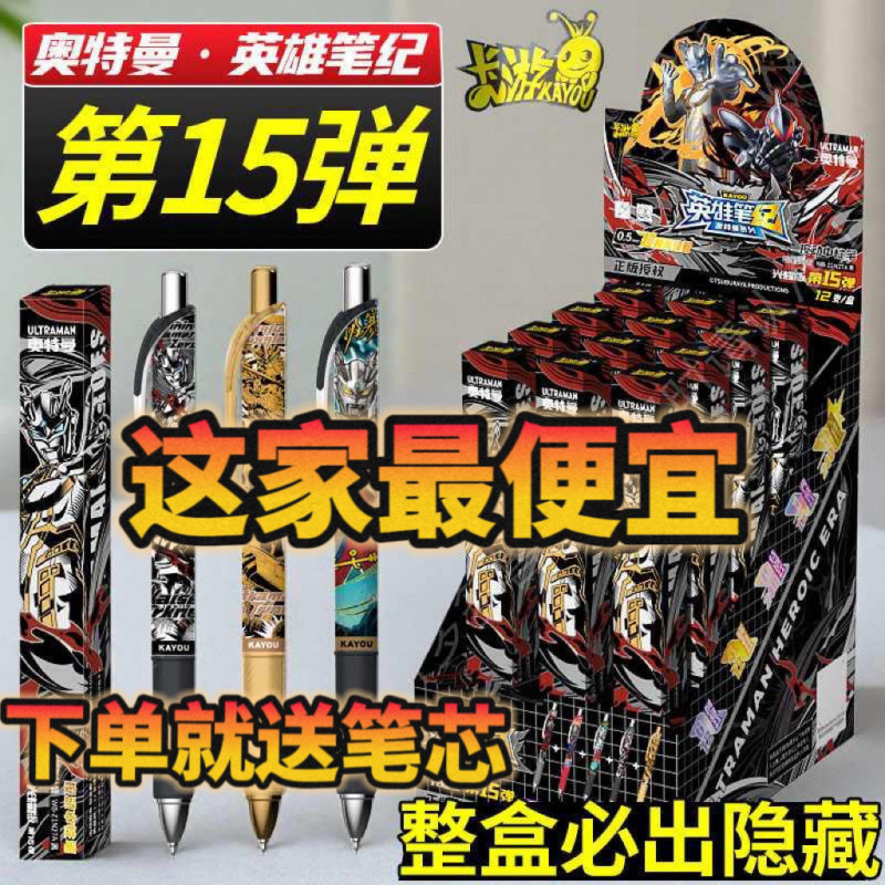 奥特曼中性笔盲盒笔英雄笔记光耀版第弹正版按动自动笔黑笔文具
