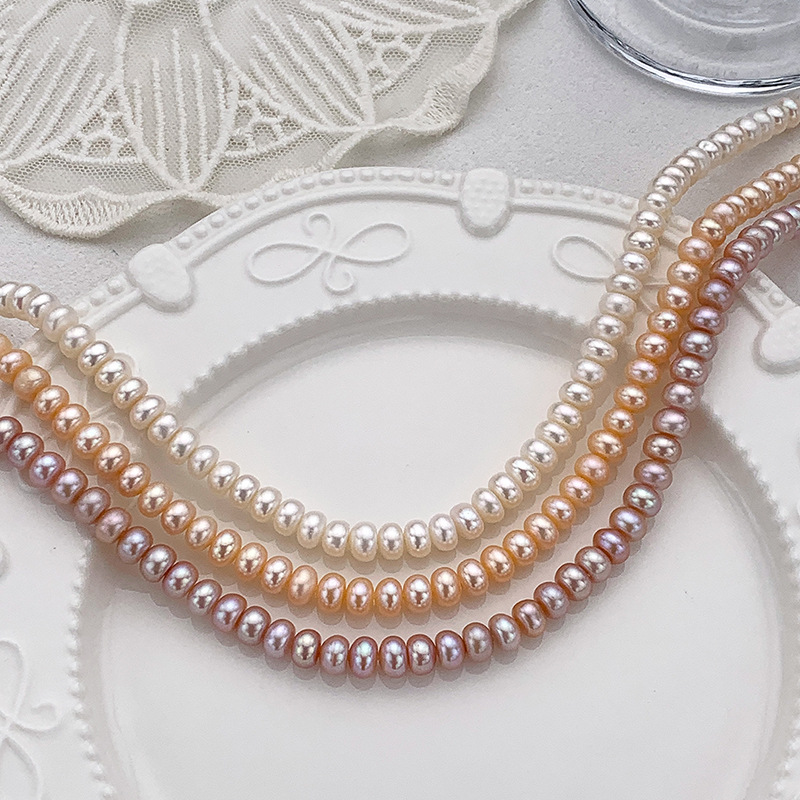 【梦间珠宝】7mm扁珠四面光馒头珠天然淡水珍珠高性价比diy手作