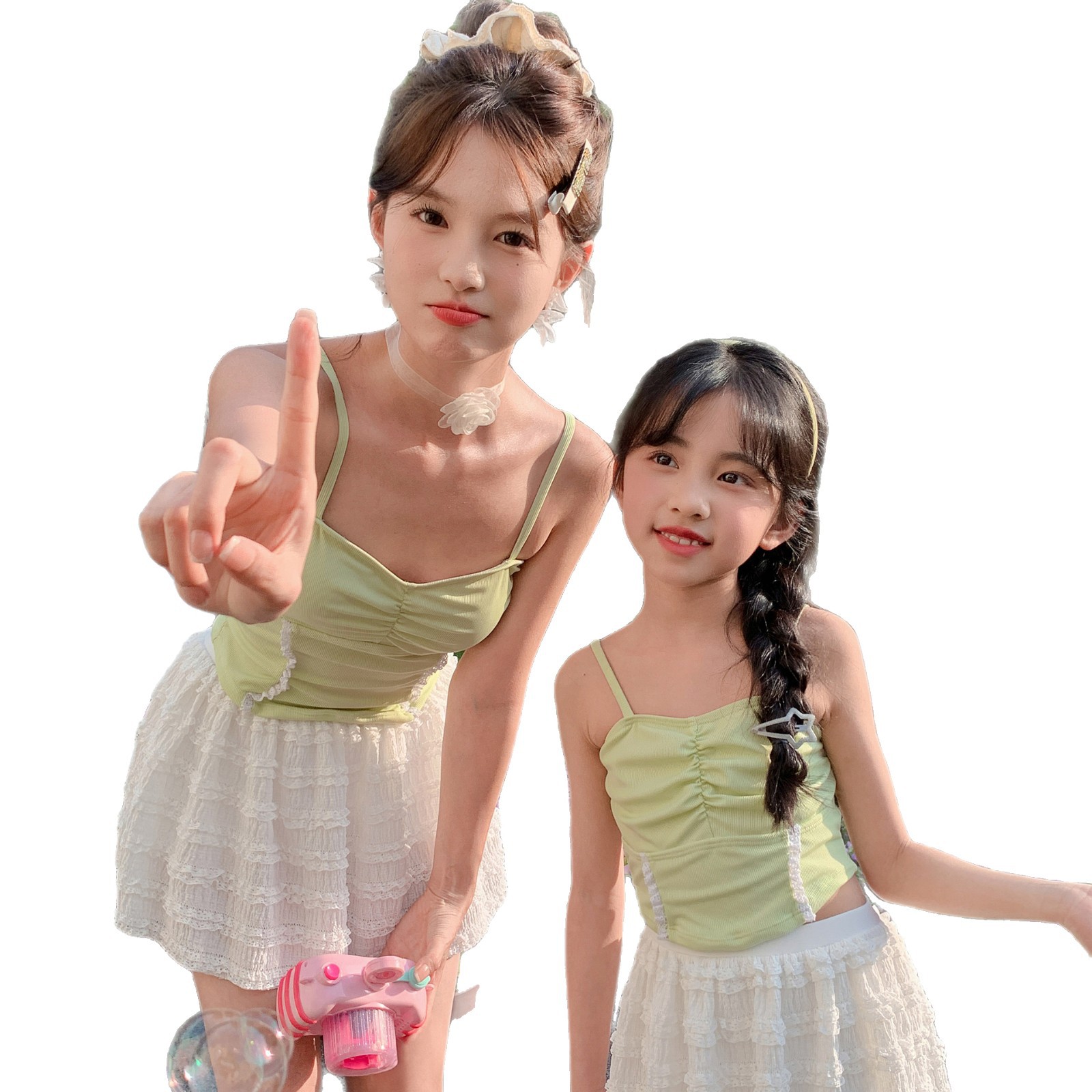 新款母女分体裙式泳装显瘦可爱儿童女宝宝舒适小胸聚拢温泉游泳衣