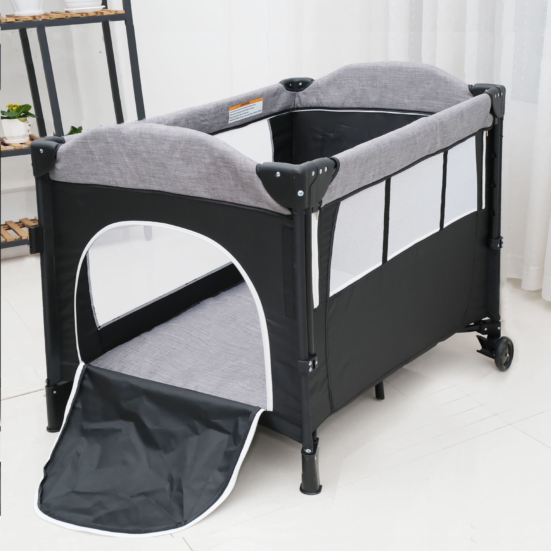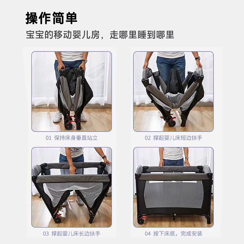 批发可折叠婴儿床可移动新生儿拼接床便携式游戏床婴儿尿布台带轮