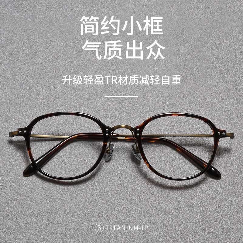 bd6033超轻9g复古小框玳瑁圆框素颜架女高度数纯钛眼镜框工厂批发