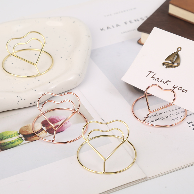 双层爱心名片夹金属便签夹创意心形鲜花卡片夹异型金属名片夹