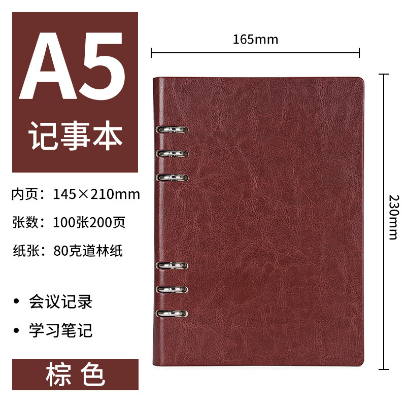 颜色纯色活页本A5棕色-100张