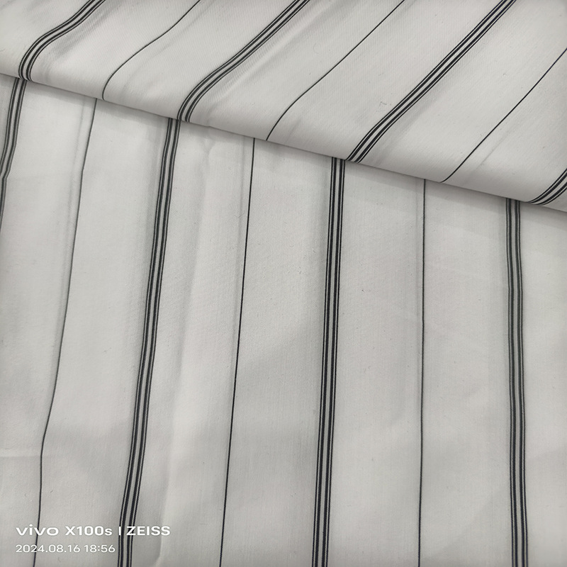 棉涤弹力混纺条纹衬衫面料 春夏新款条子布料现货