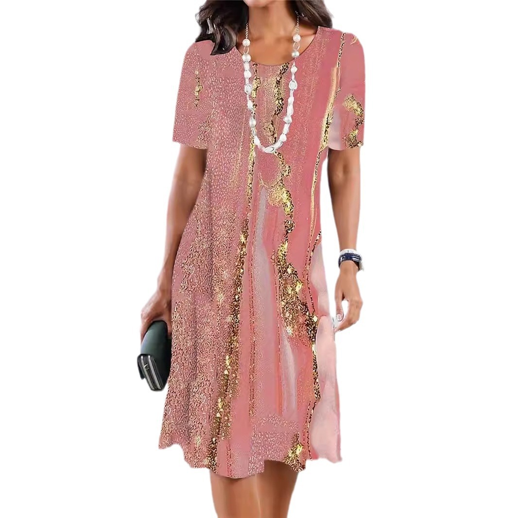欧美新款女士连衣裙跨境时尚百搭日常休闲宽松大码圆领短袖连衣裙