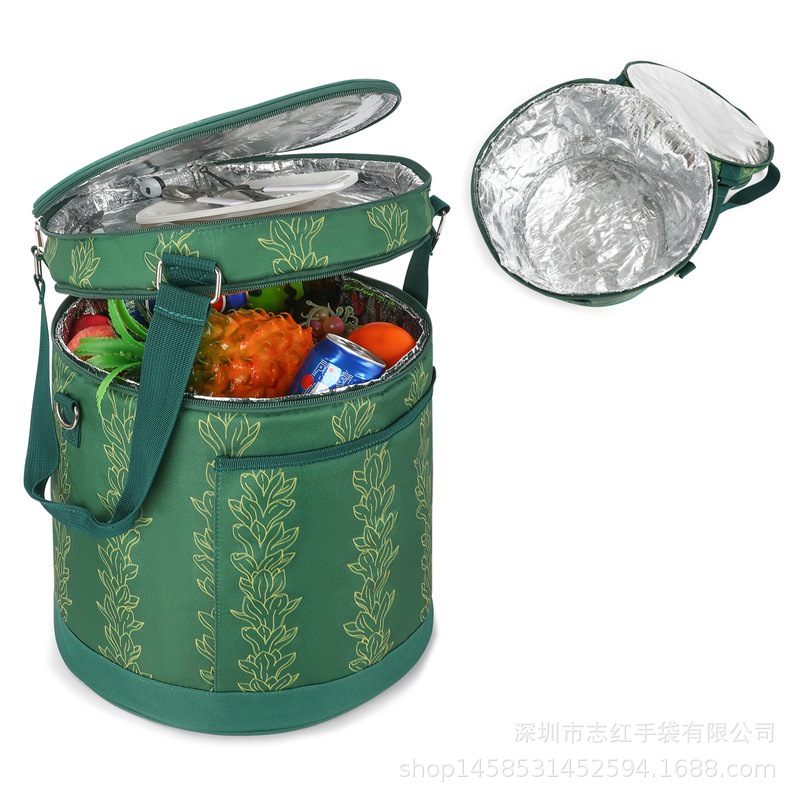迪土尼验厂定制圆形保温包大容量保鲜冰包可折叠便携午餐保温袋