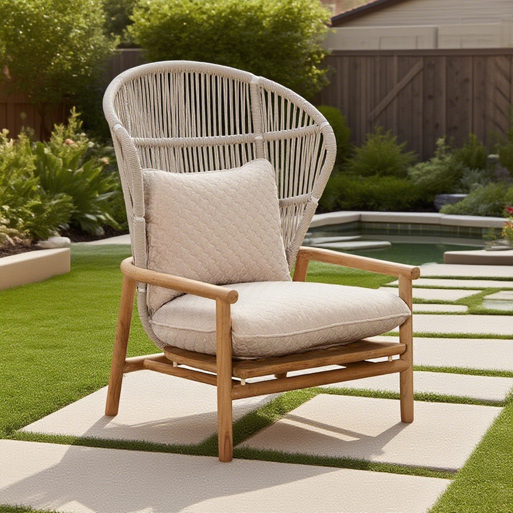 北欧户外沙发露台花园实木茶几家具庭院别墅阳台高背单人柚木沙发
