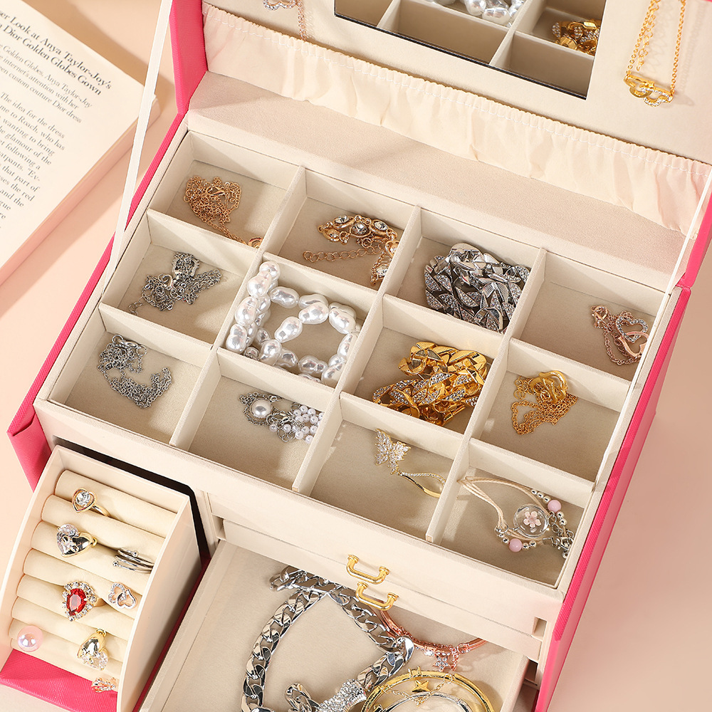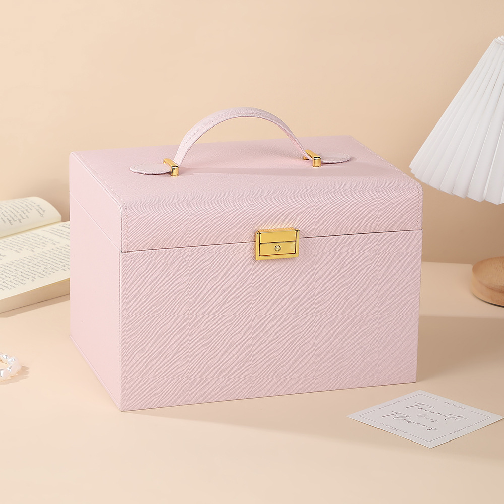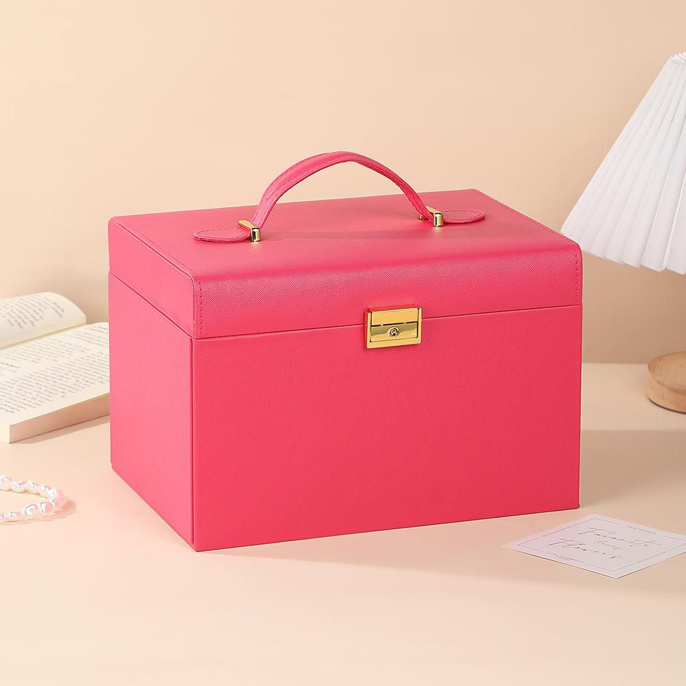 新款新款珠宝首饰收纳盒PU皮大容量带镜项链手链首饰箱饰品盒批发