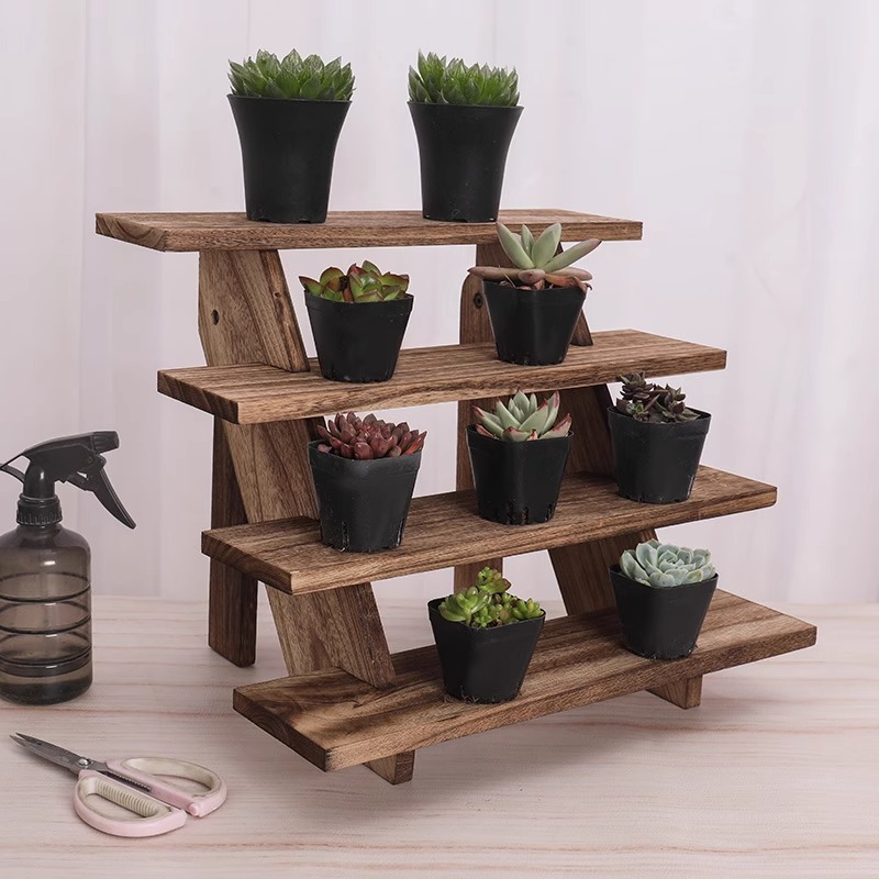 木质四层调料架玩具化妆品文玩小摆件茶具茶杯置物架家用收纳架