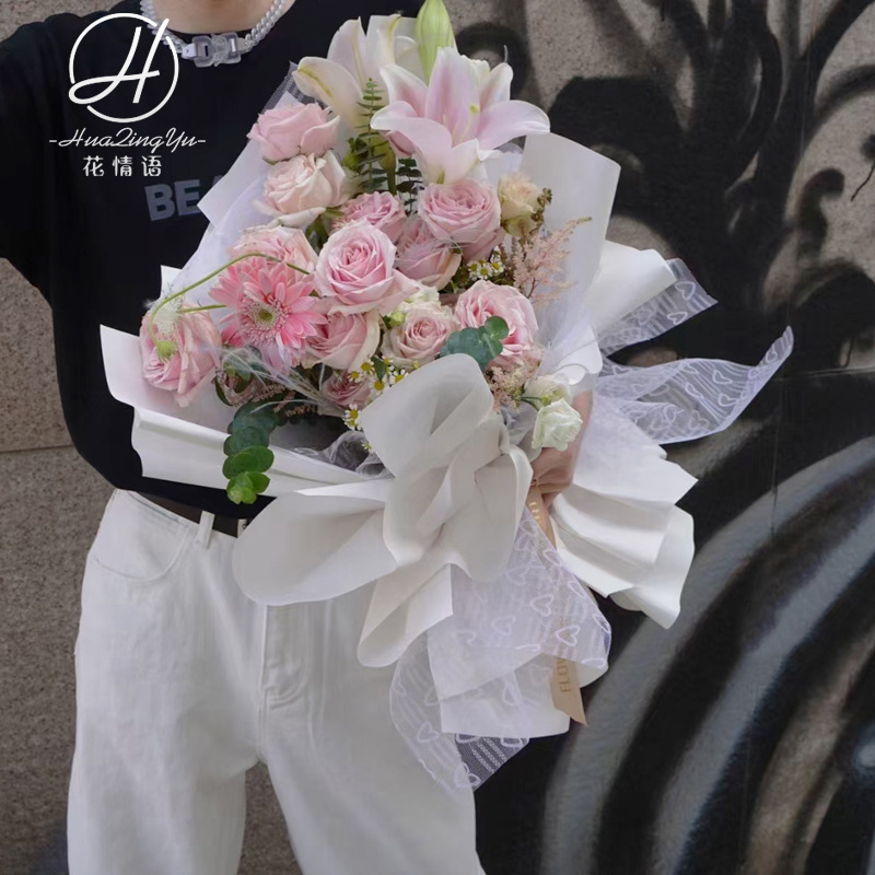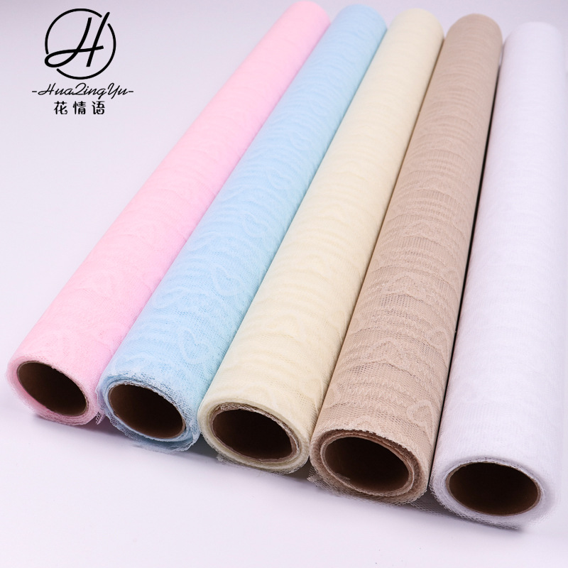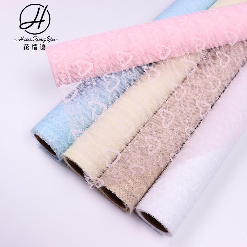 七夕情人节爱心印花鲜花包装网纱现货批发星雨心愿纱花束包装材料