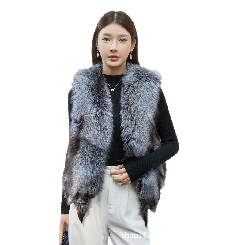 新款马夹银狐狸毛整皮马甲红狐毛皮草外套短款修身坎肩真毛背心