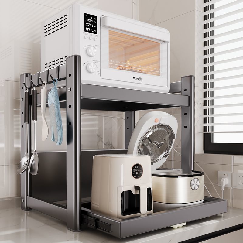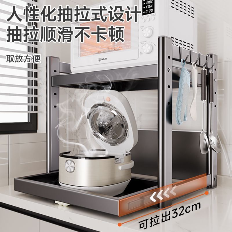 厨房微波炉置物架台面烤箱支架调料架多功能电饭煲可伸缩收纳架