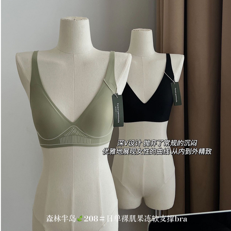 森林半岛208#日单裸肌果冻软支撑bra无钢圈软糯舒适深V聚拢内衣女