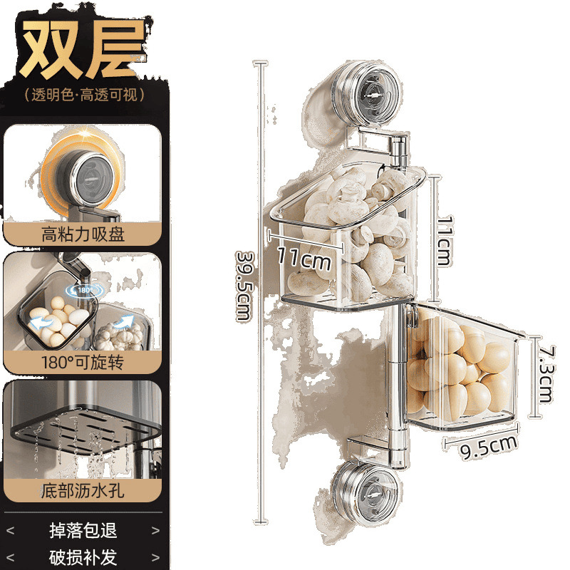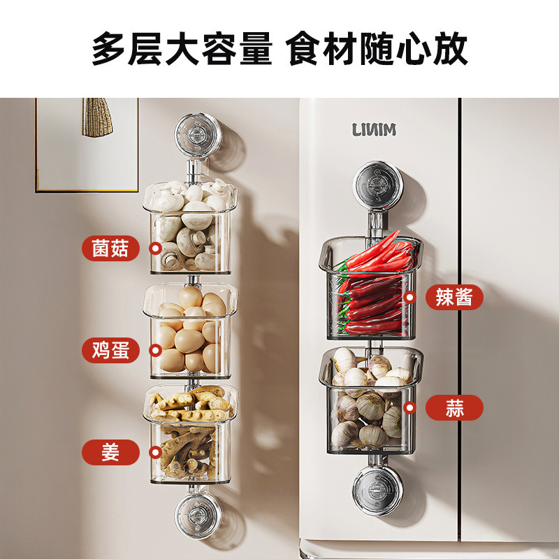 葱姜蒜收纳盒厨房吸盘置物架免打孔多层生姜大蒜收纳神器挂篮