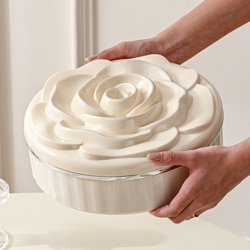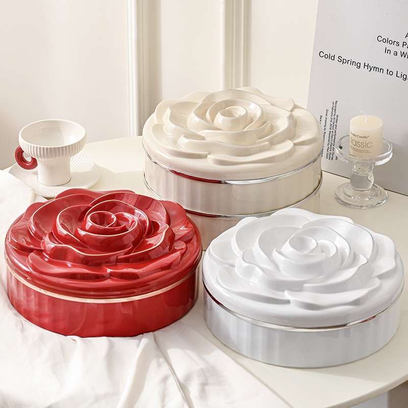 新款玫瑰花款干果盘家用客厅餐厅茶机轻奢分隔零食糖果收纳坚果盒