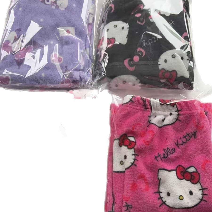 义乌外贸休闲运动长裤软糯糯法兰绒女冬季新款松紧腰高腰阔腿热裤