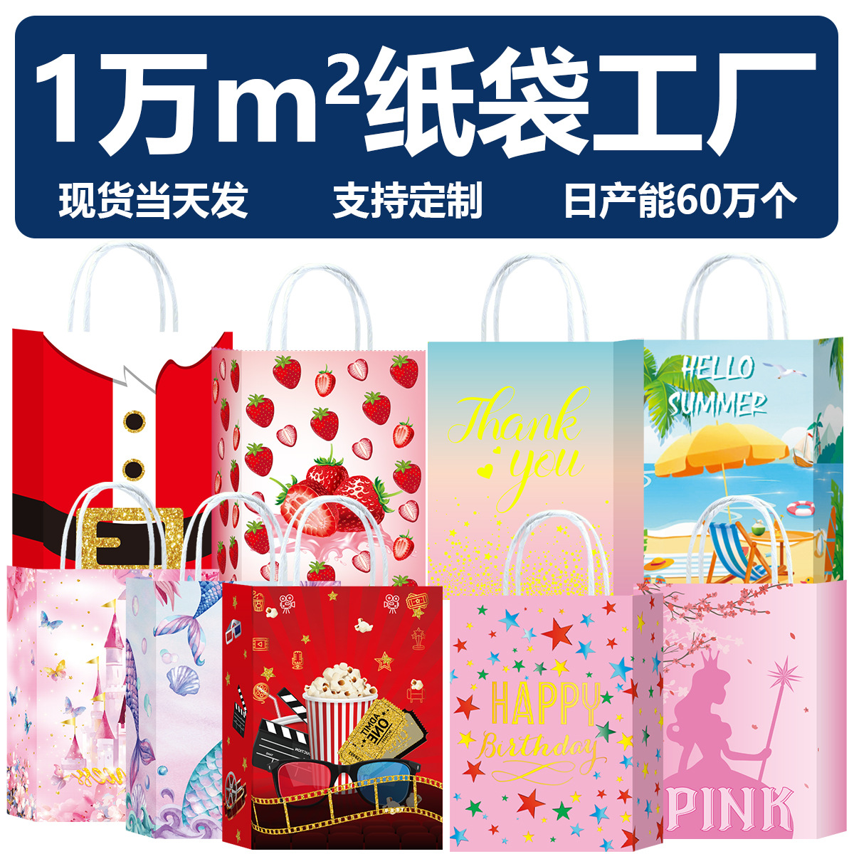 跨境纸袋手提袋 梦幻亮色雪花手提纸袋 购物派对牛皮纸袋礼物包装