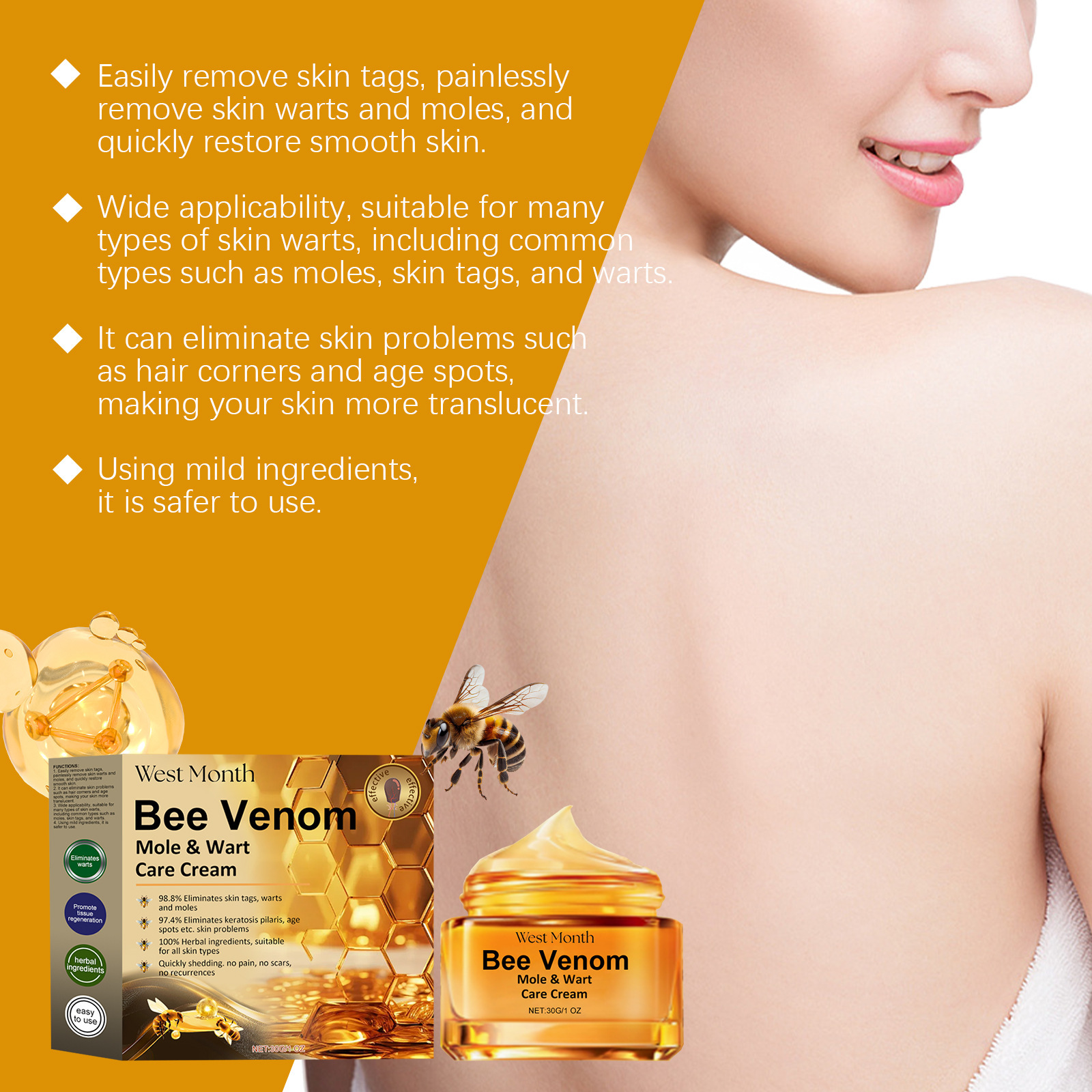 West Month 蜂毒护理霜 滋润光滑肌肤温和护理皮肤身体护理