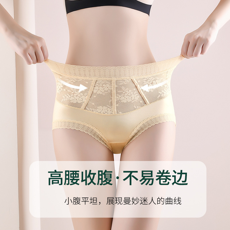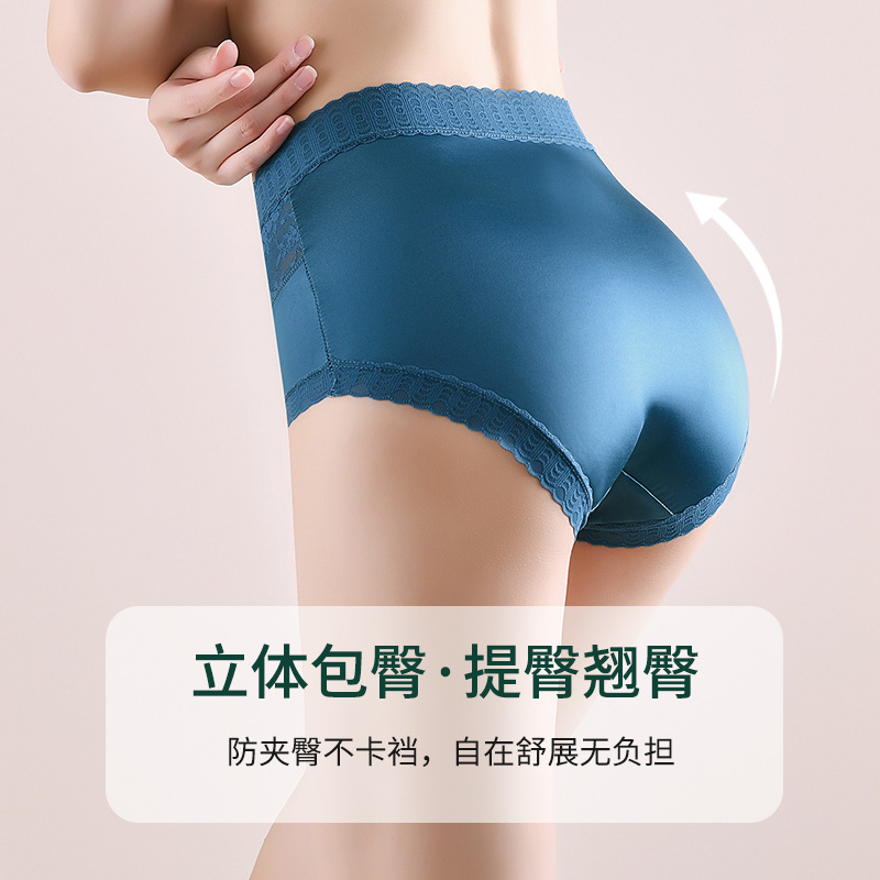新款蕾丝性感女士三角裤提臀柔软透气高腰镂空缎面拼接收腹女内裤