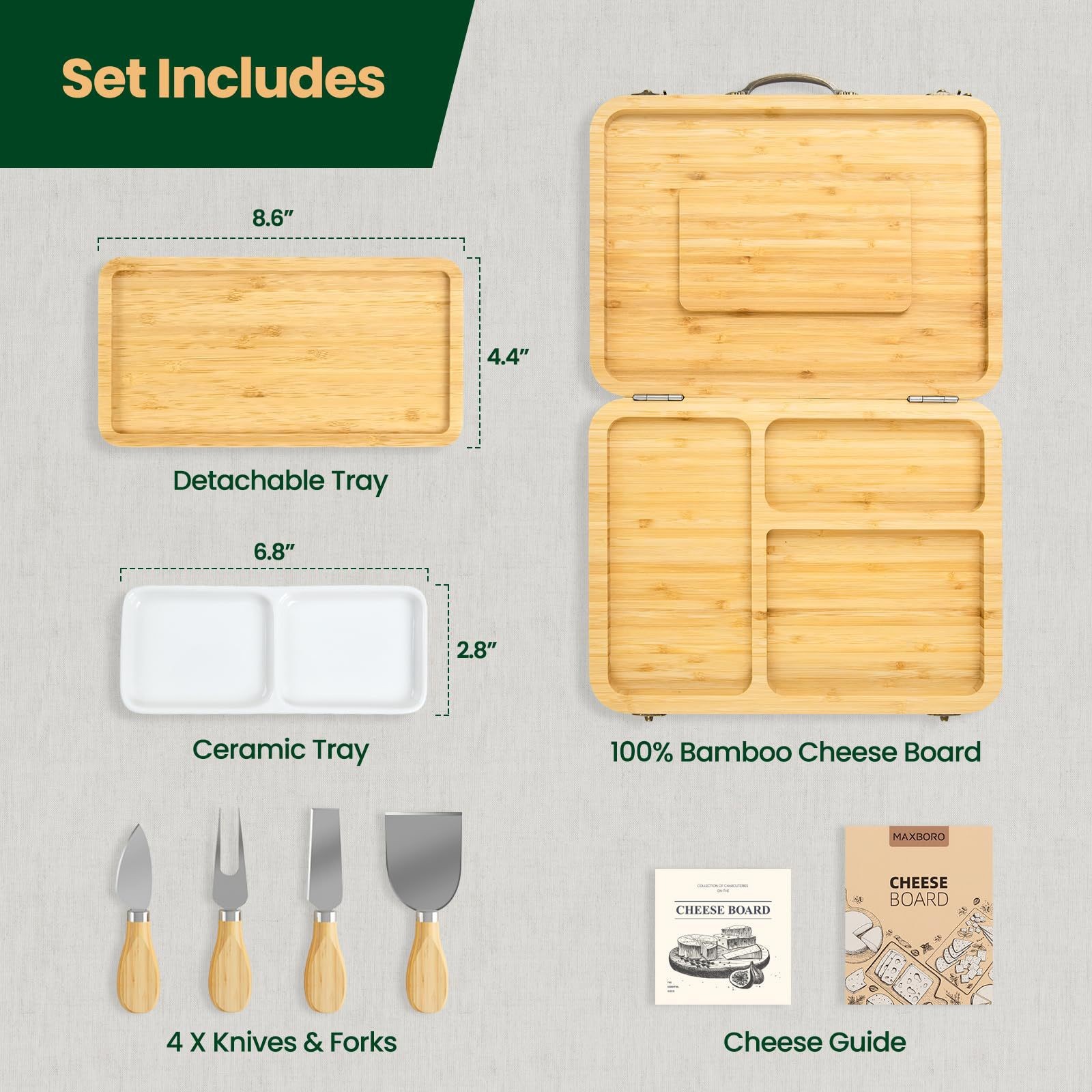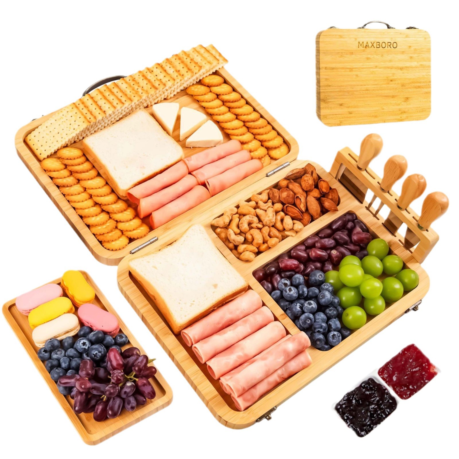 竹制坚固易于存放磁性安装服务拼盘带刀旅行野餐奶酪托盘套装