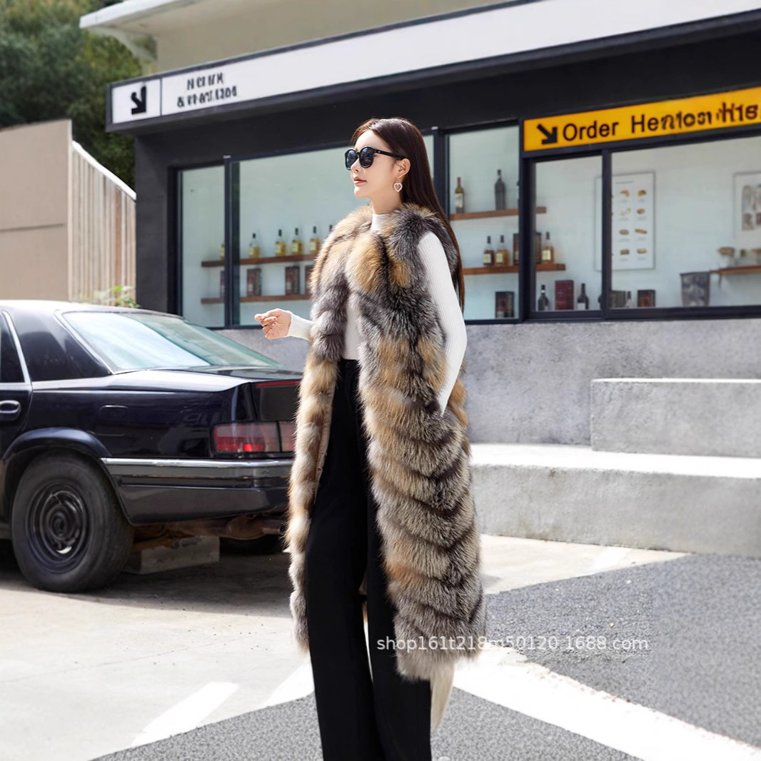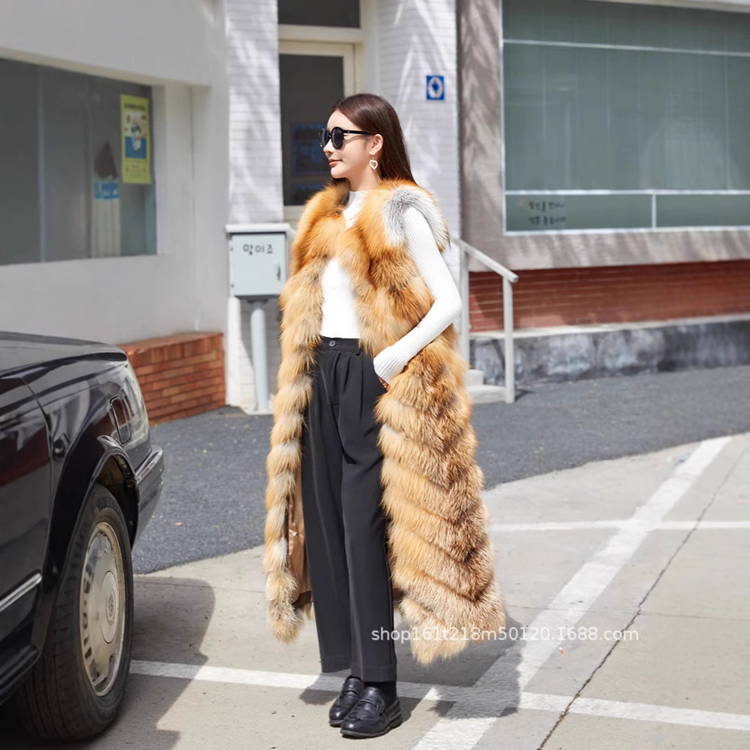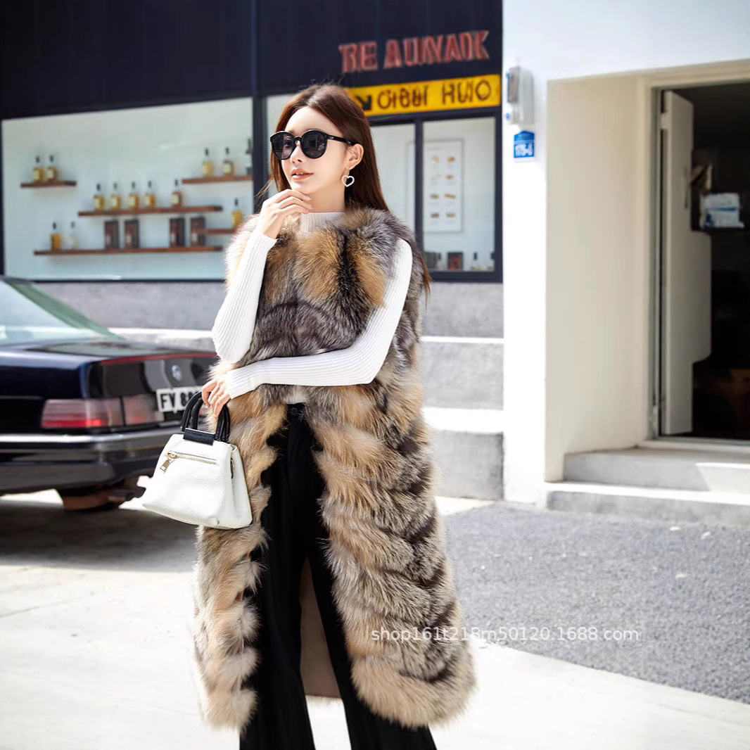 2024冬季芬兰进口狐狸毛轻奢背心韩版坎肩皮草马甲中长款反季促销