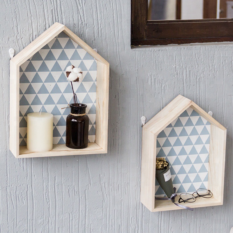 木制房屋形状储物架,用于壁挂式简单家居装饰