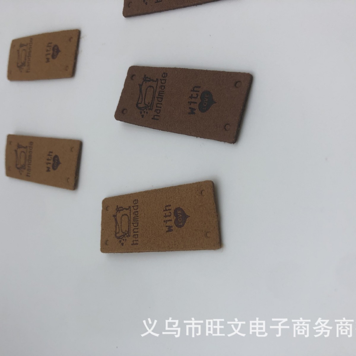 厂家直销超纤彩色缝纫机handmade卡通标帽子皮标服装辅料头饰商标