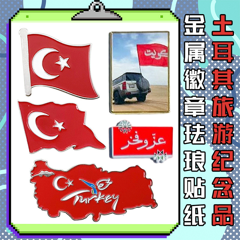 土耳其红白月星图案徽章金属手机贴热门旅游城市文创纪念礼品批发
