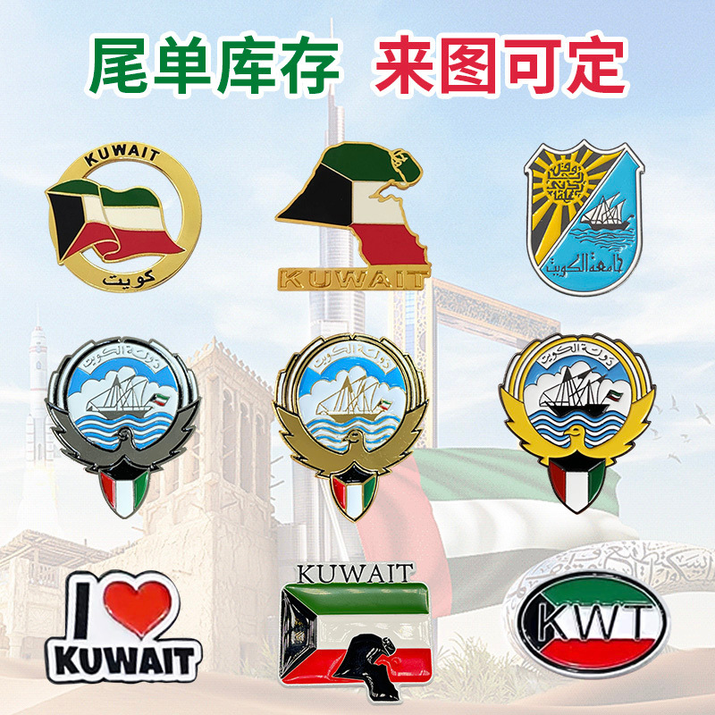 科威特国旗徽国土形状图腾符号徽章金属手机贴国庆节日纪念品批发