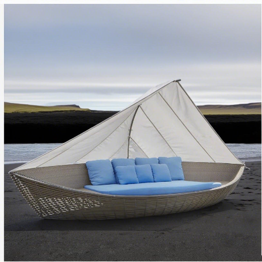 户外休闲沙发庭院花园酒店家具民宿别墅创意带遮阳棚室外藤编舒适