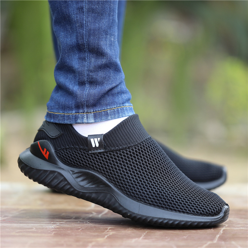 回力男鞋夏季新款一脚蹬透气防臭网面鞋飞织休闲鞋软底防滑跑步鞋