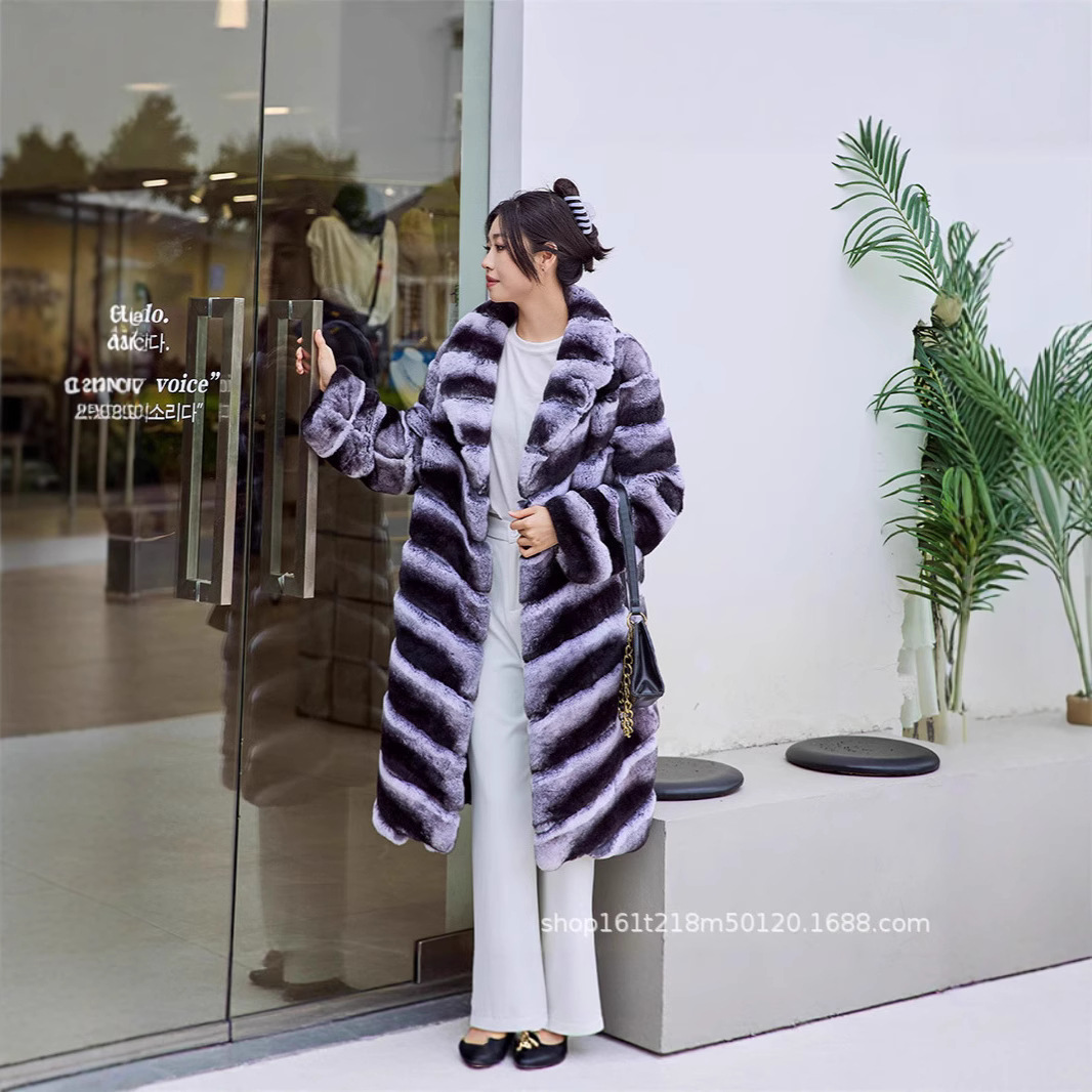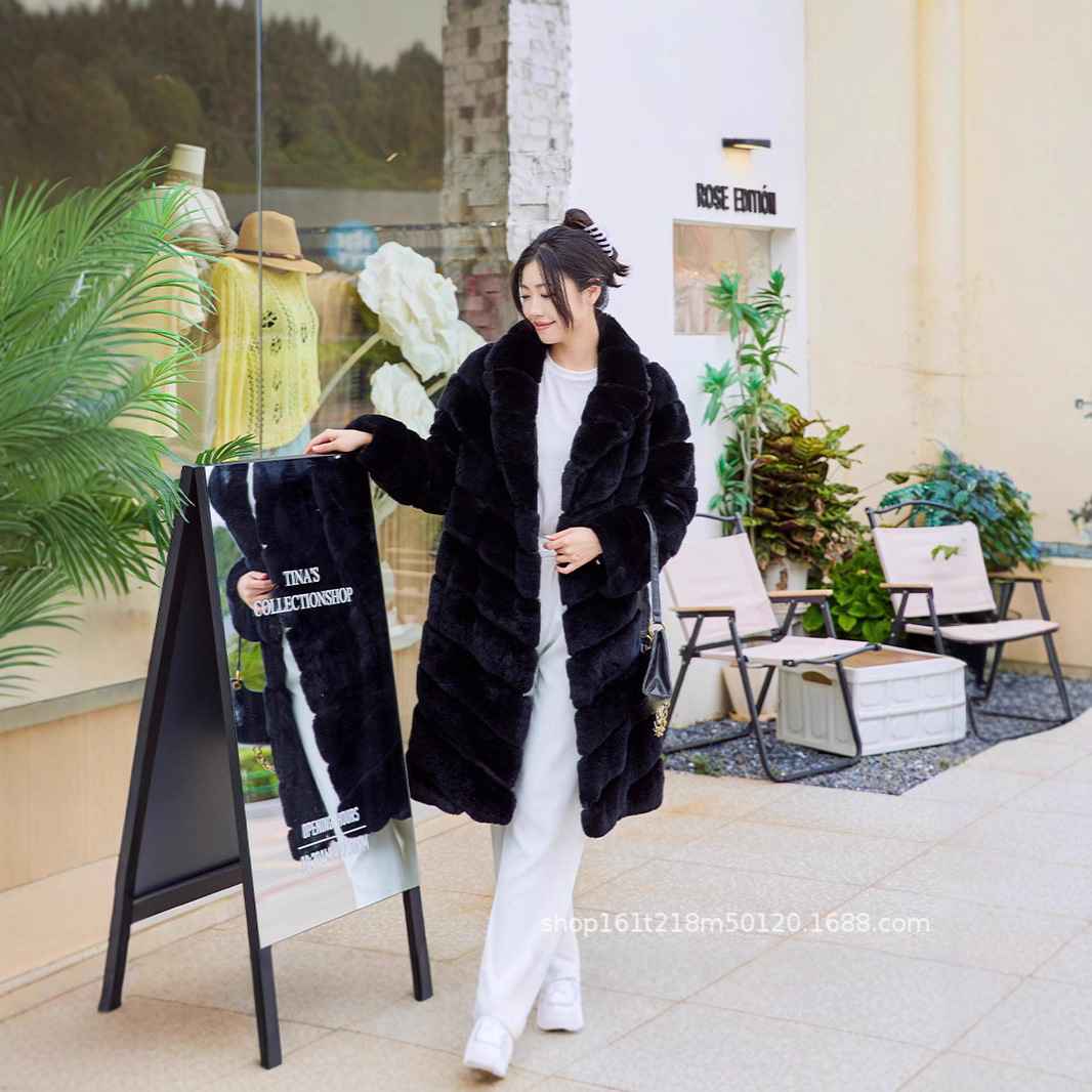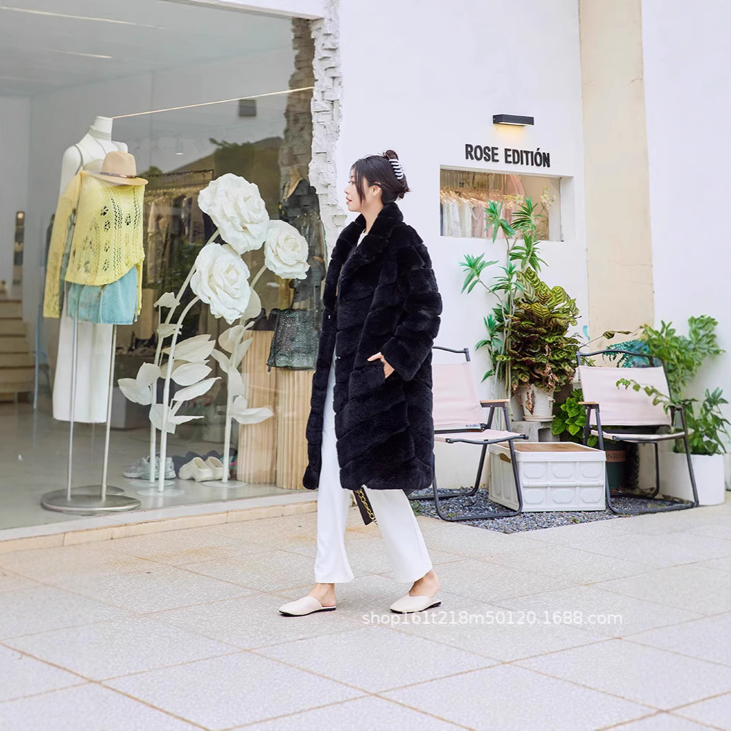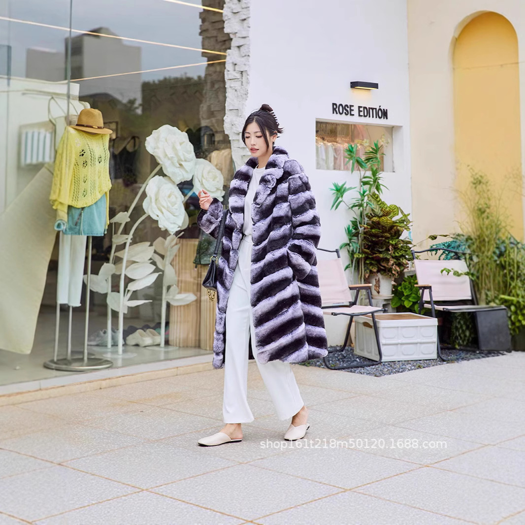 20224獭兔毛青紫兰龙猫色皮草外套休闲女装保暖西服领连帽大衣
