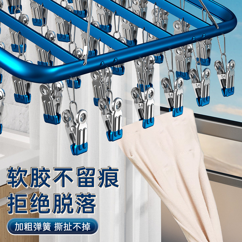 | 颜色 | 不锈钢方形18夹 极光蓝【加粗骨架/防滑无痕夹】 | 风格 | 其它 |