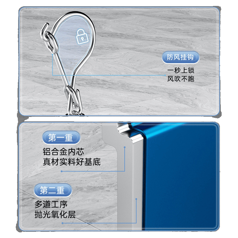 | 颜色 | 铝合金方形26夹-极光蓝【加粗骨架/防滑无痕夹】 | 颜色 | 铝合金方形26夹-太空银【加粗骨架/防滑无痕夹】 |