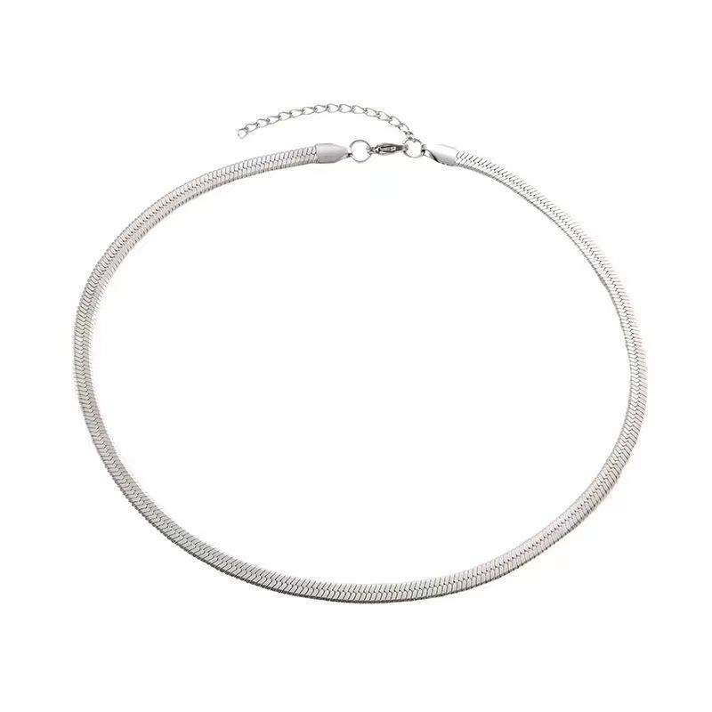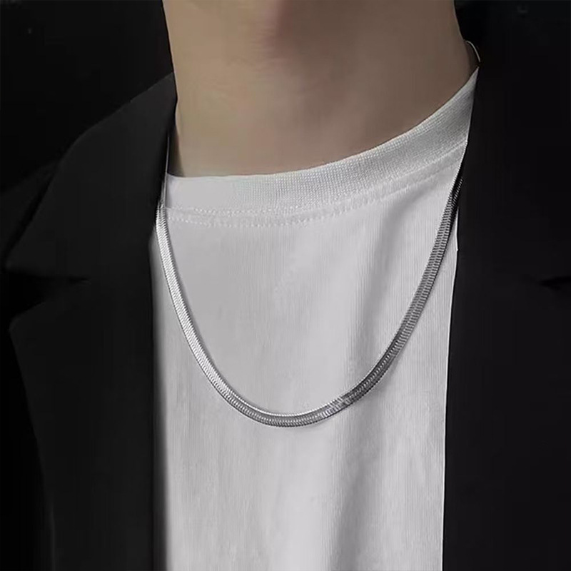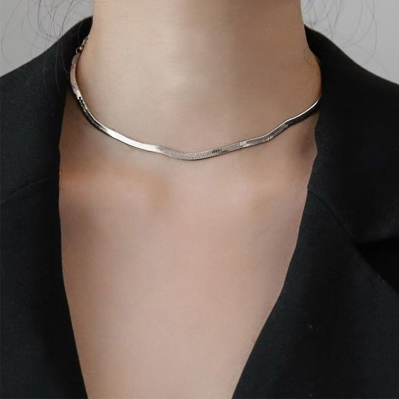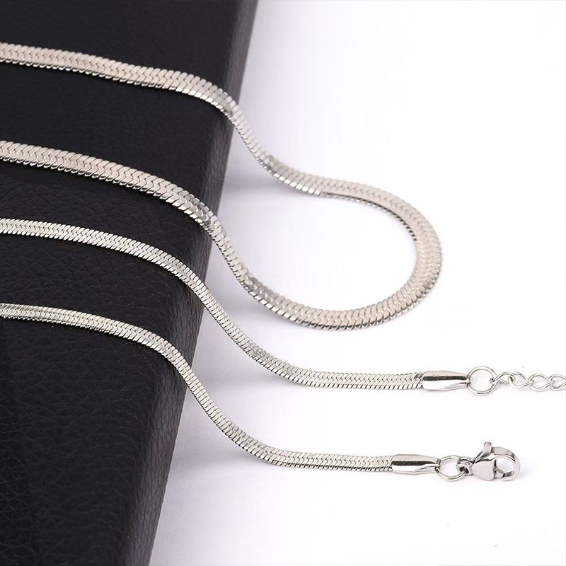 跨境简约不锈钢刀片链欧美时尚嘻哈扁平女式钛钢项链扁蛇骨项链