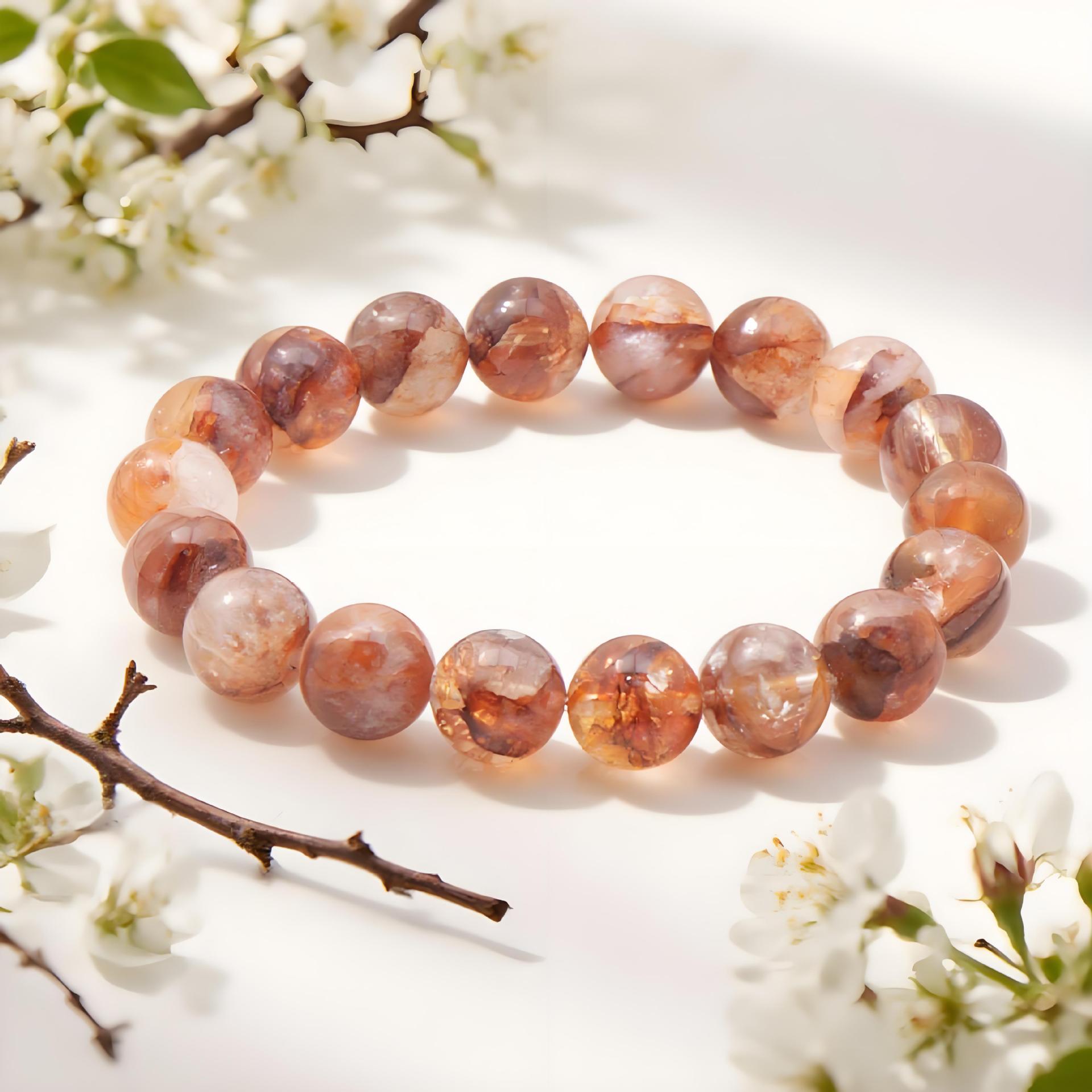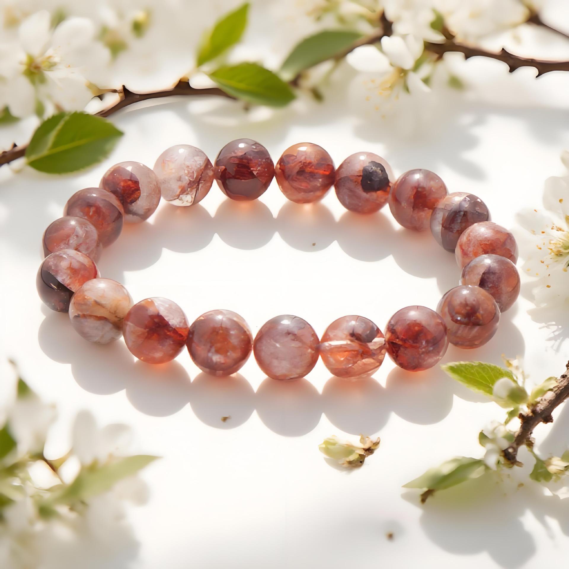 天然深红胶花手串手链胶花新款园珠型diy水晶手串手链成品批发
