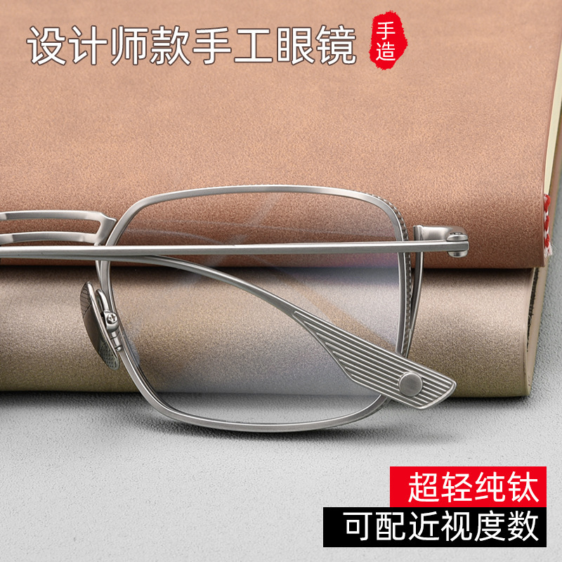 日系复古DTX125超轻纯钛眼镜框设计师款小众手工方框大脸眼镜批发