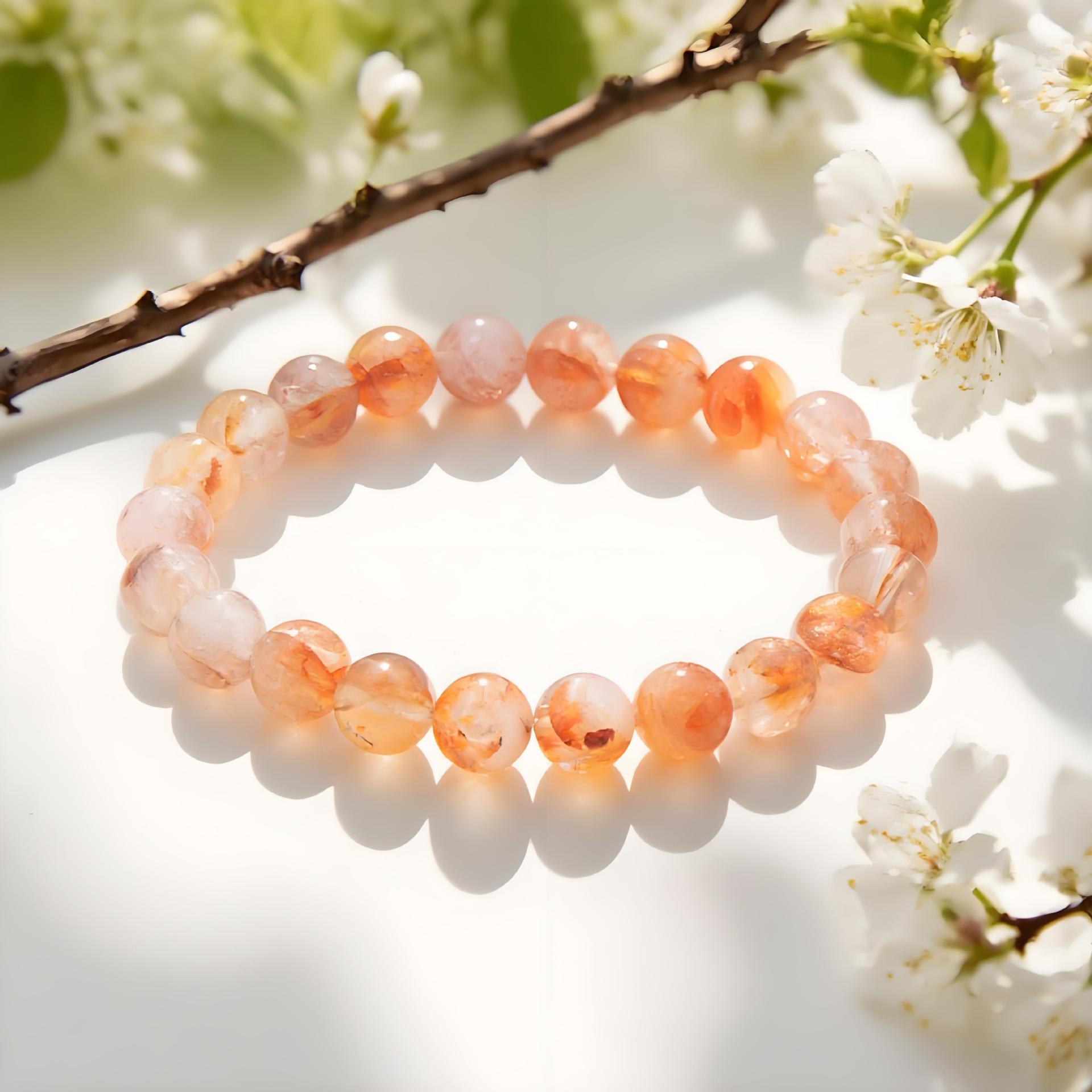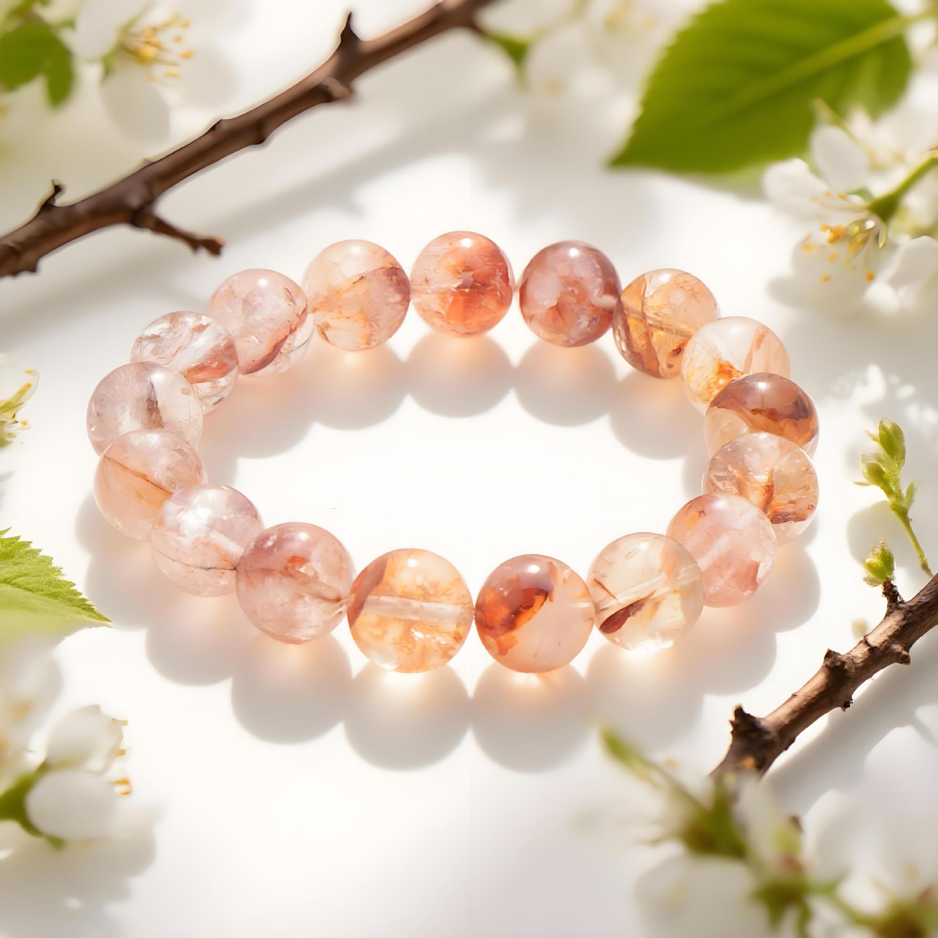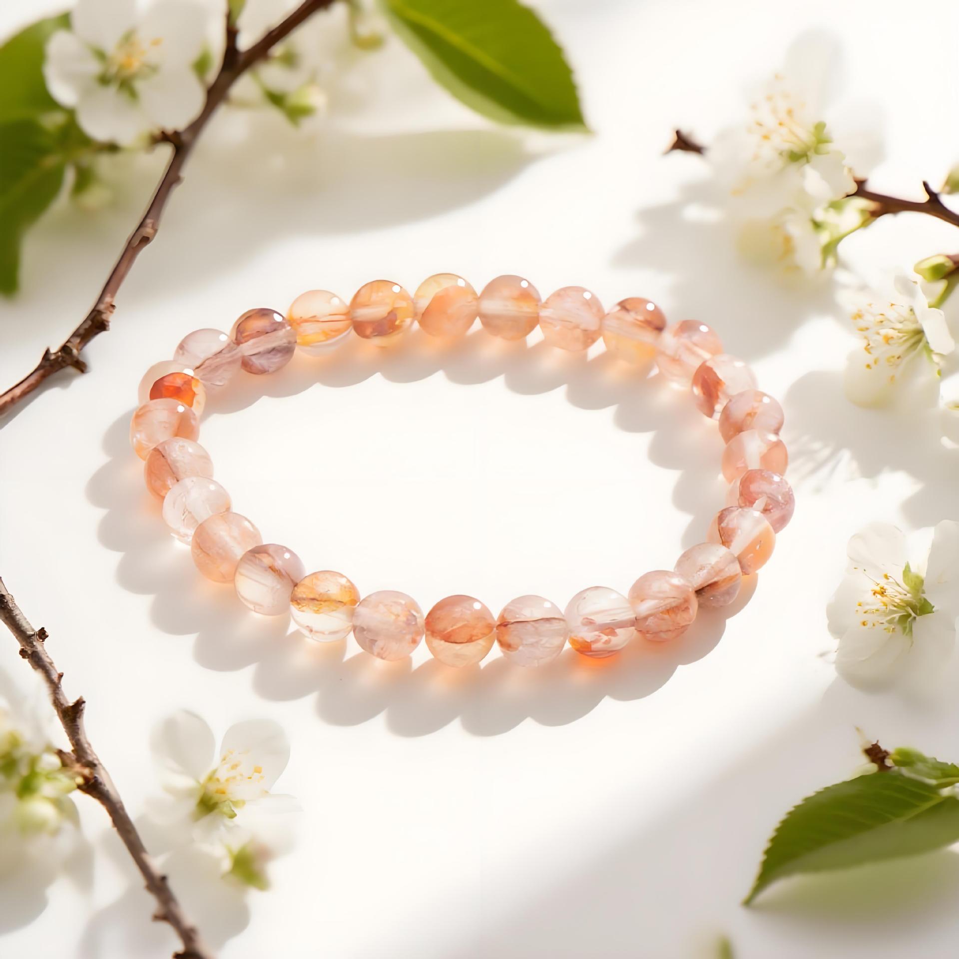 天然红胶花碎石手链黄胶花新款园珠型diy水晶手串手链成品批发