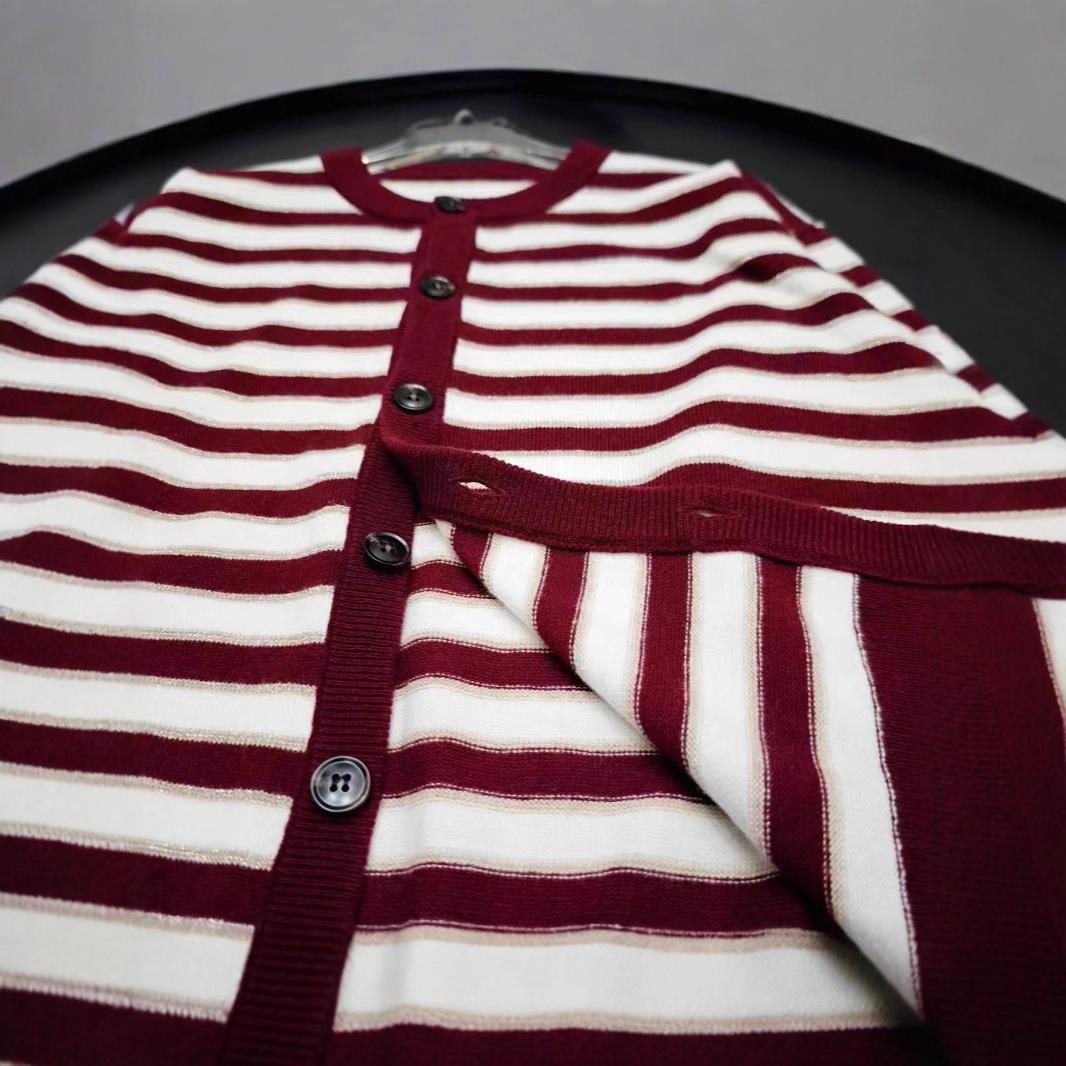 2025早秋BC家新品欧美跨境女装时尚圆领金线条纹针织短款开衫外套