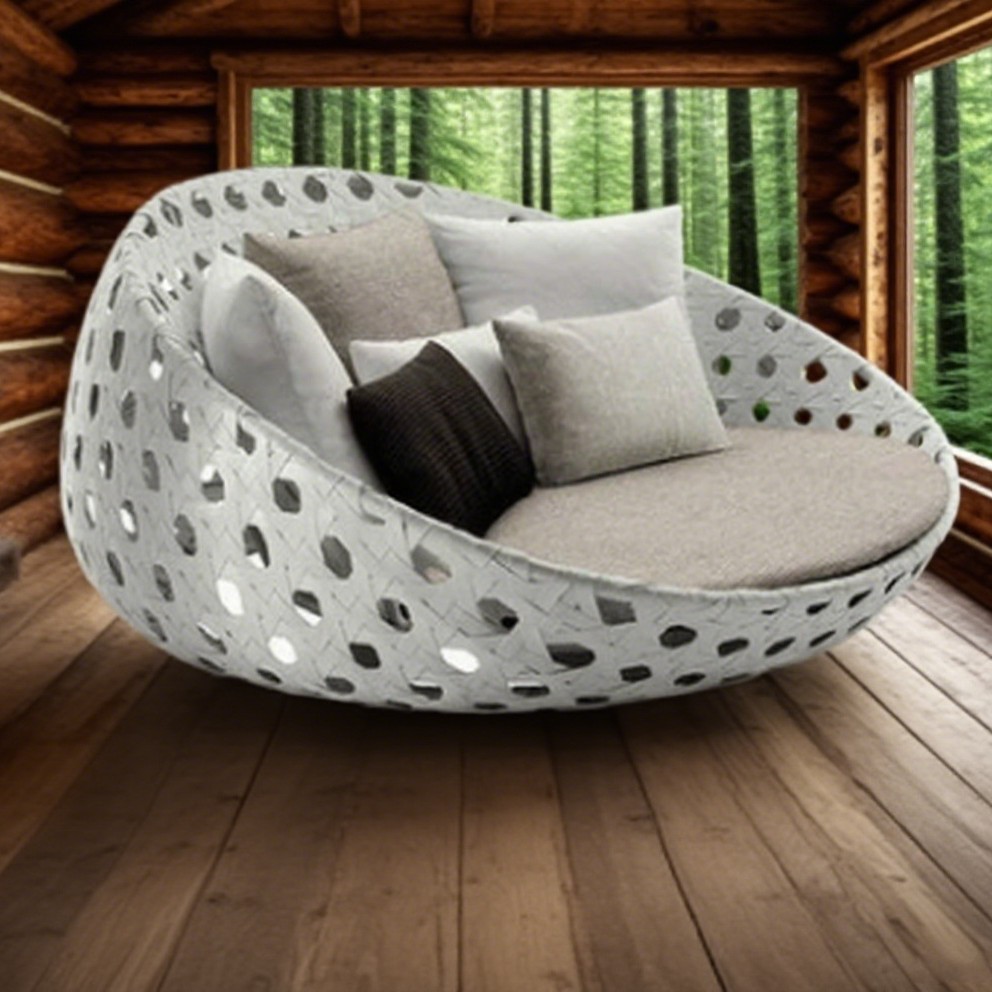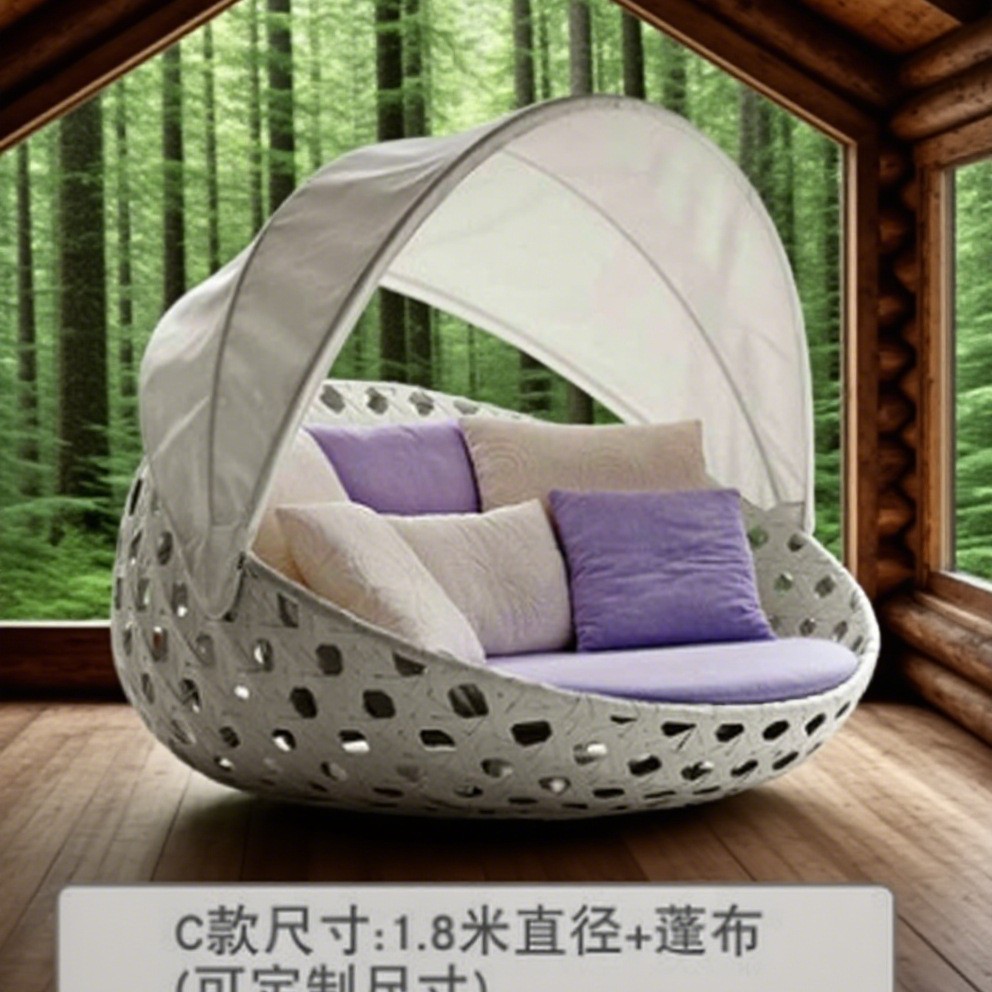 户外藤编躺床设计师创意款休闲藤艺沙发度假村酒店游泳池沙滩躺椅