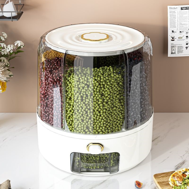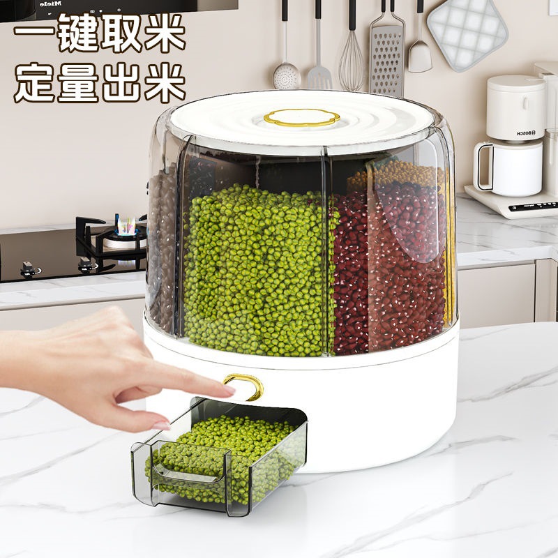 新款多功能可旋转米桶五谷杂粮收纳桶分格米桶粗粮收纳桶防尘米缸