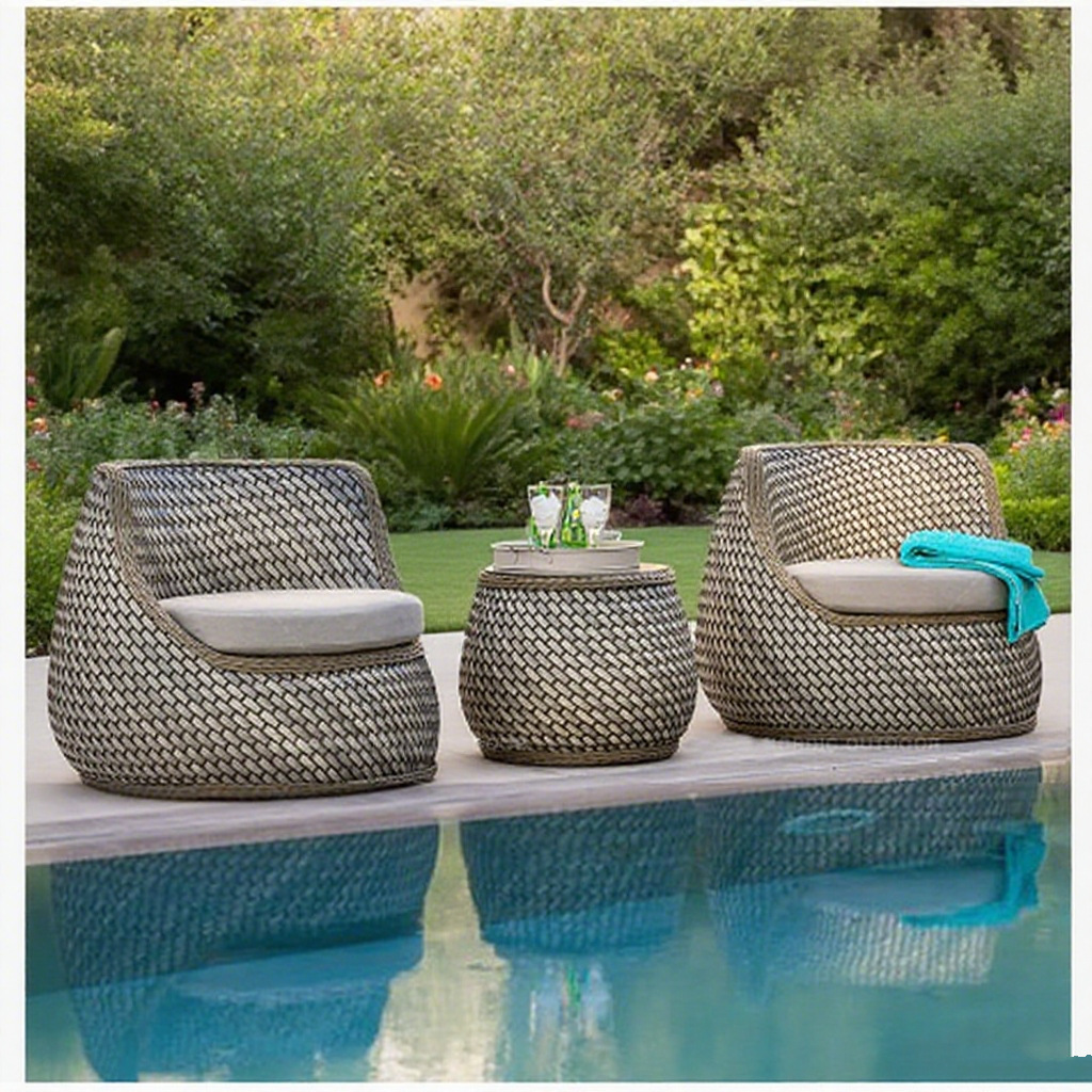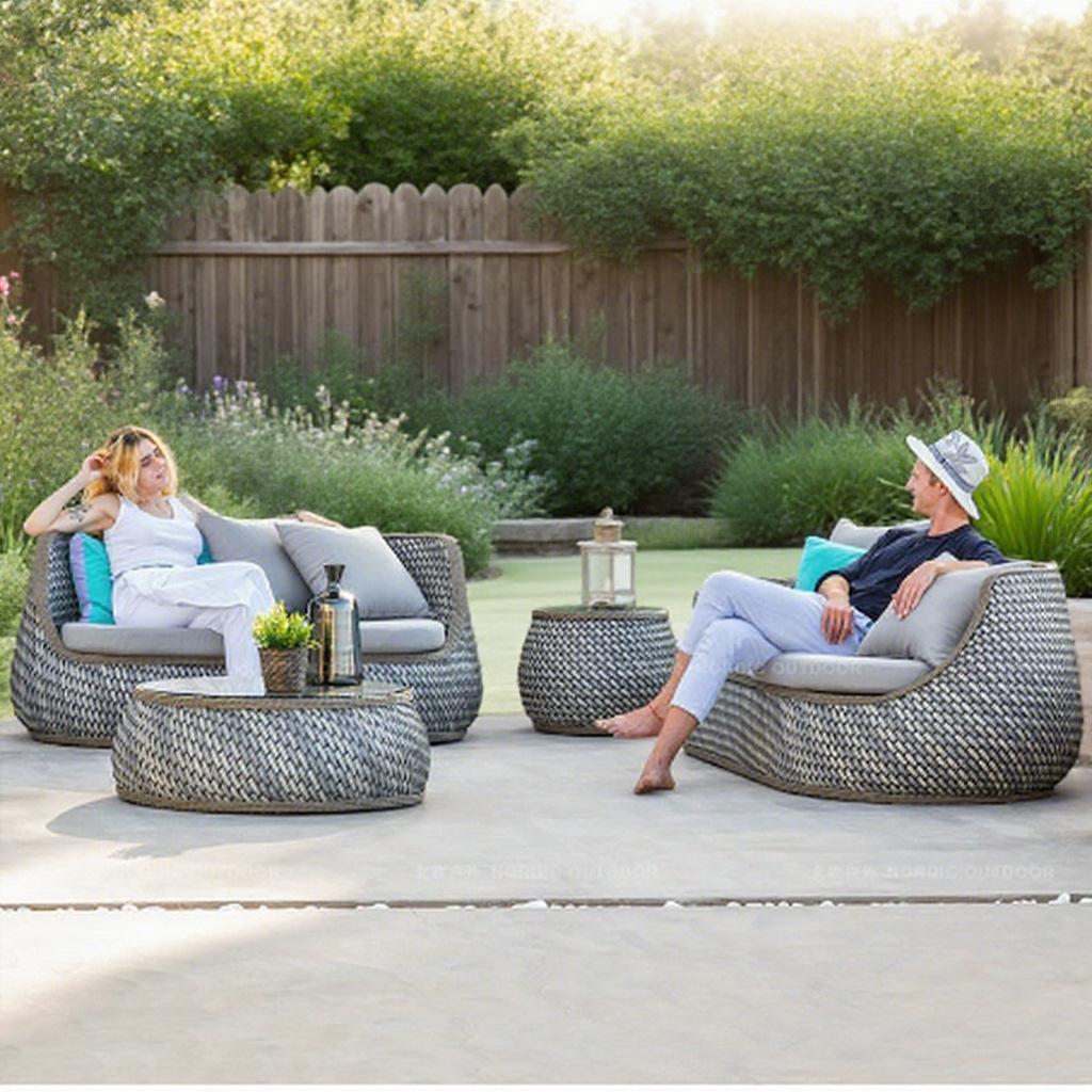 户外沙发庭院花园藤编圆形躺床泳池休闲躺椅设计师室外家具茶几