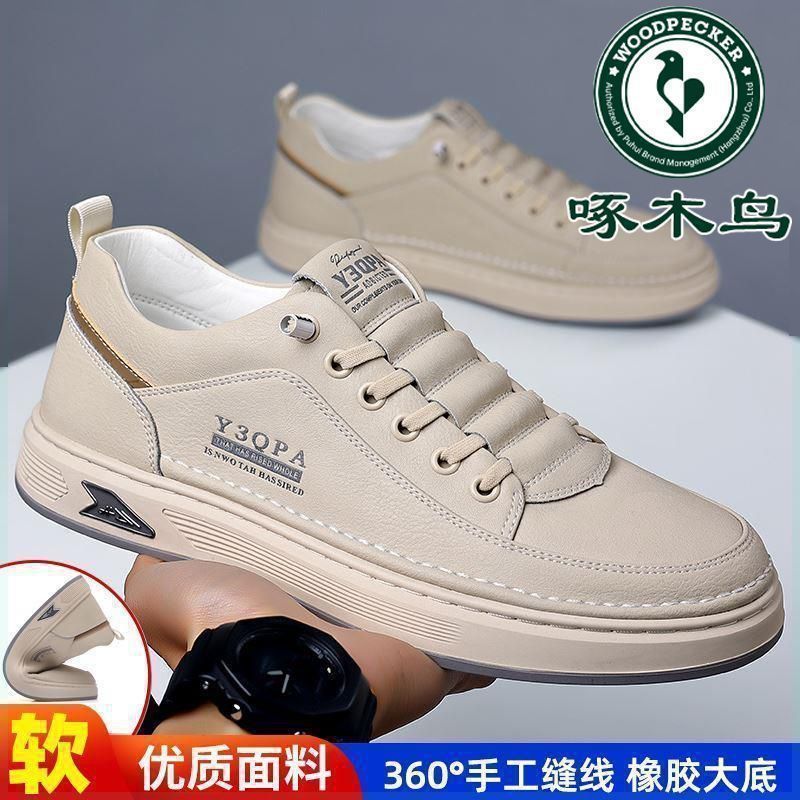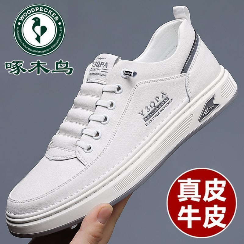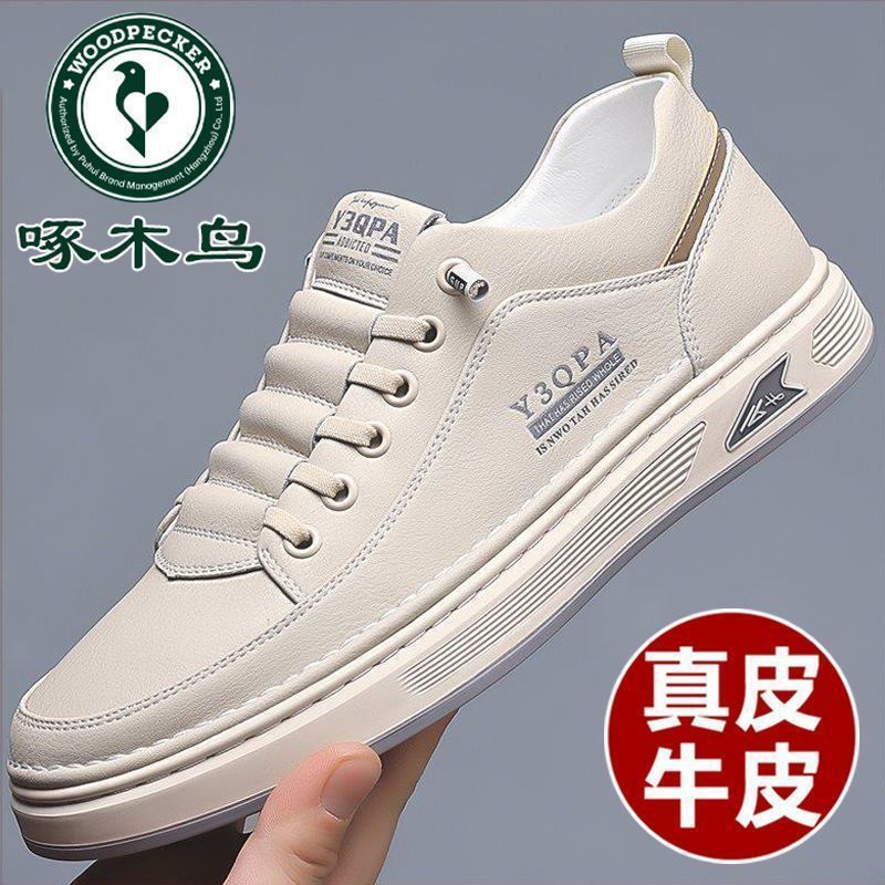 啄木鸟断码真皮男鞋夏季百搭透气运动板鞋防滑软底套脚小白鞋